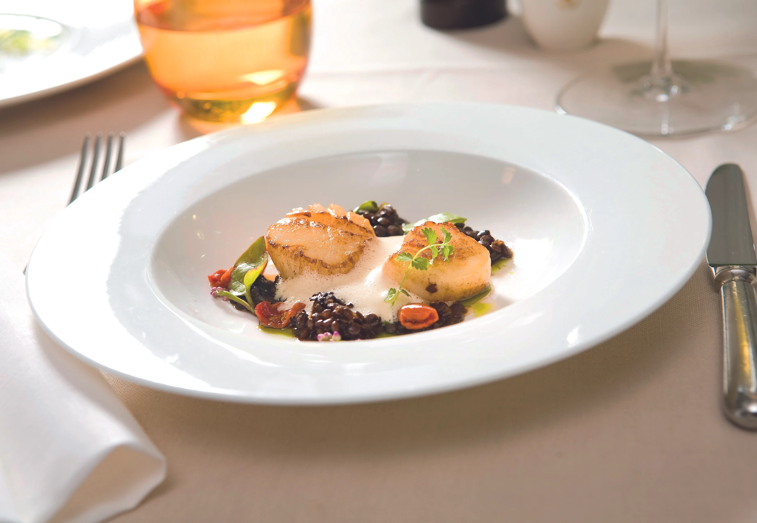 Jakobsmuscheln mit Belugalinsen und Ofenparadeisern
