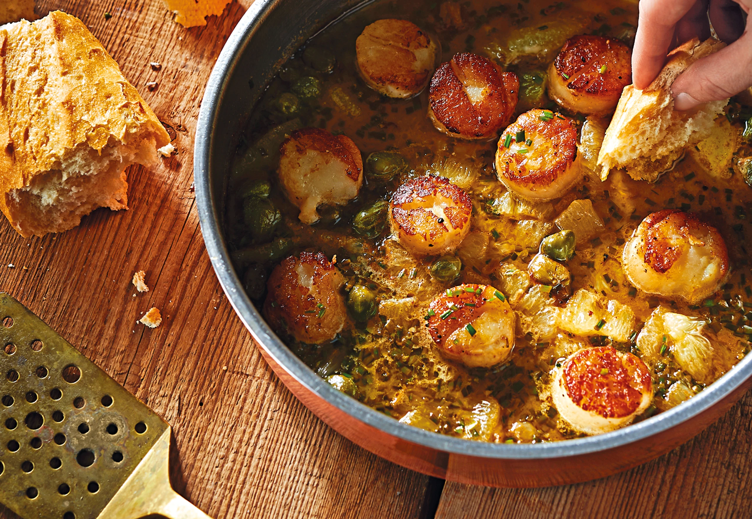 Jakobsmuscheln mit brauner Butter, Zitrone und Kapern