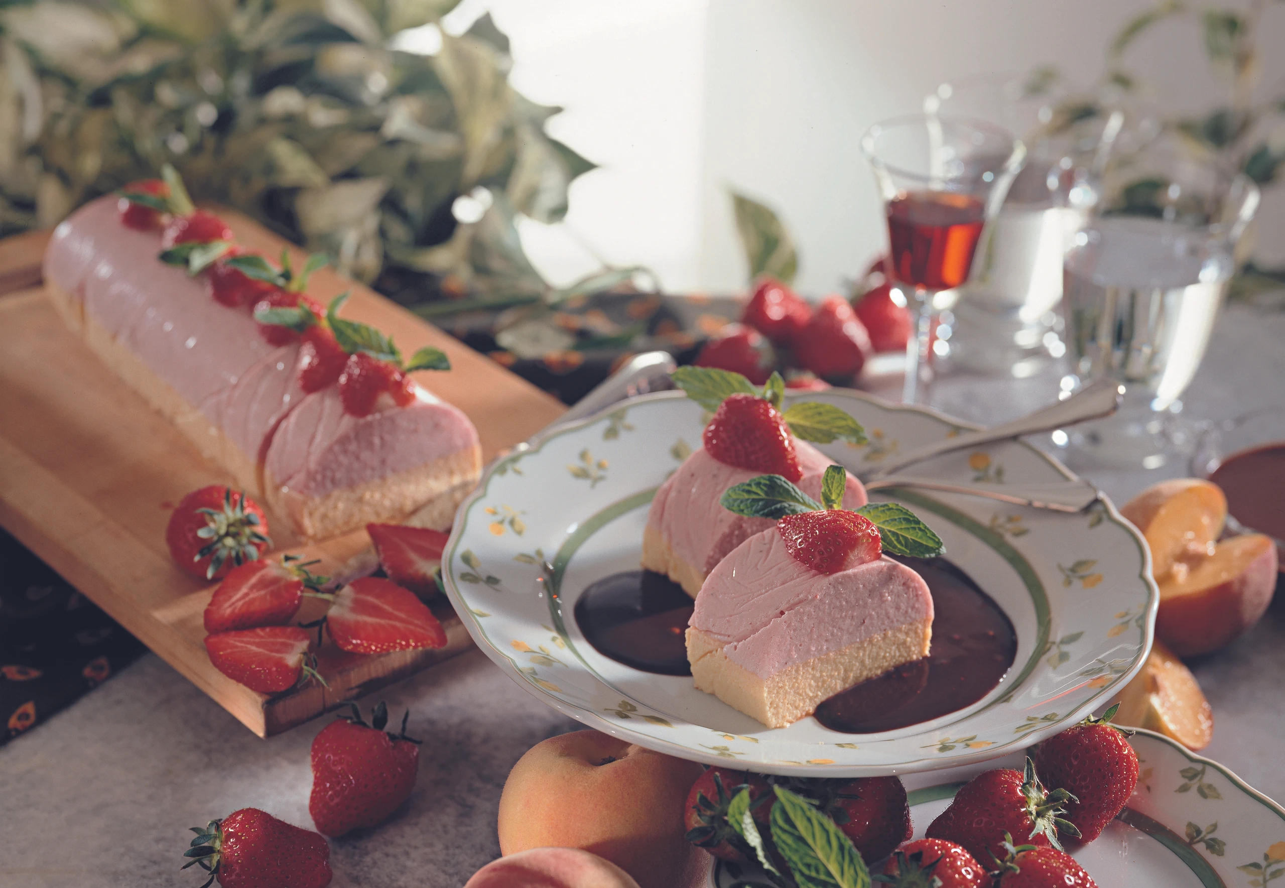 Joghurt-Fruchtterrine mit Schokoladesauce