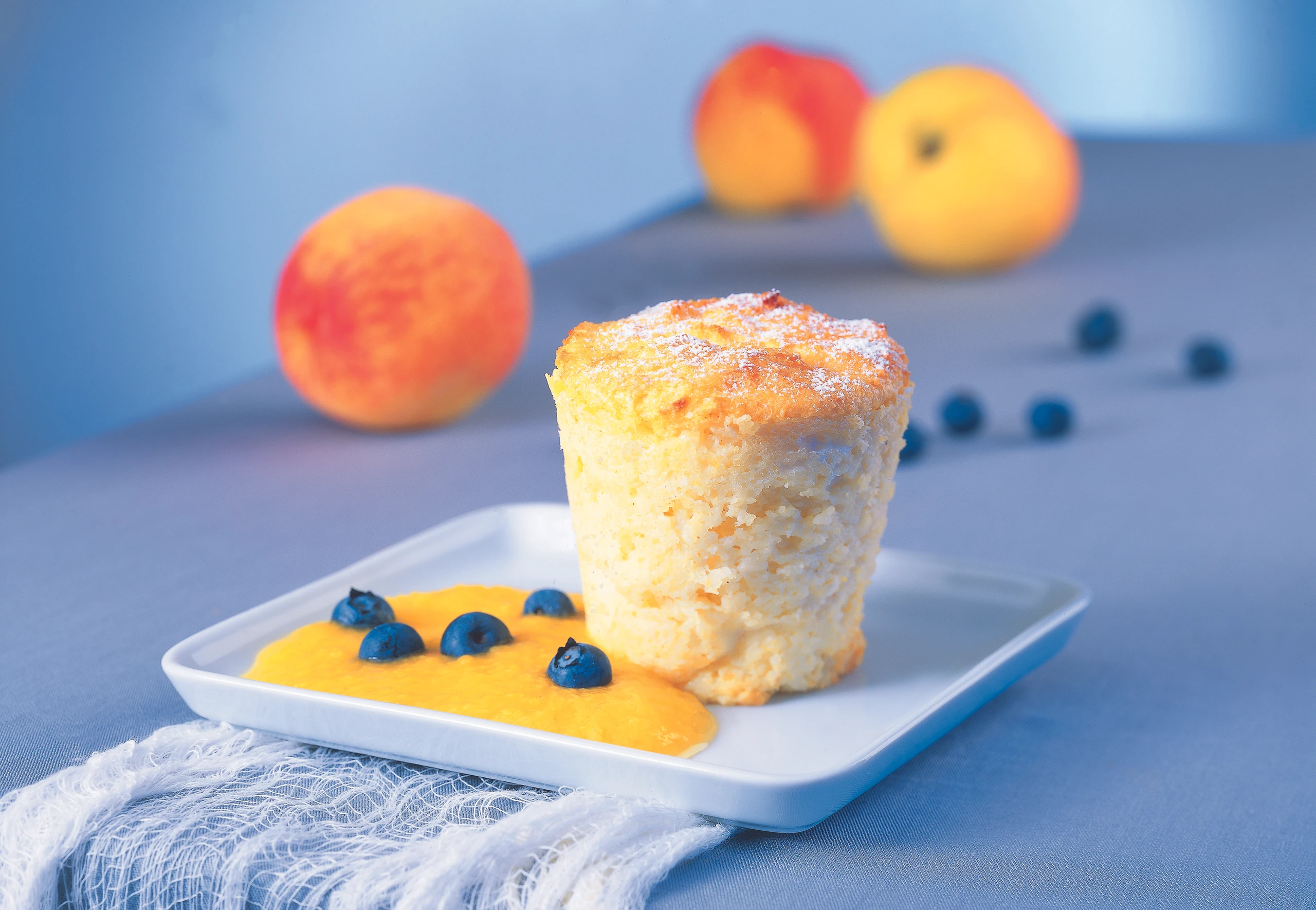 Joghurt-Grieß-Auflauf mit Pfirsichsauce
