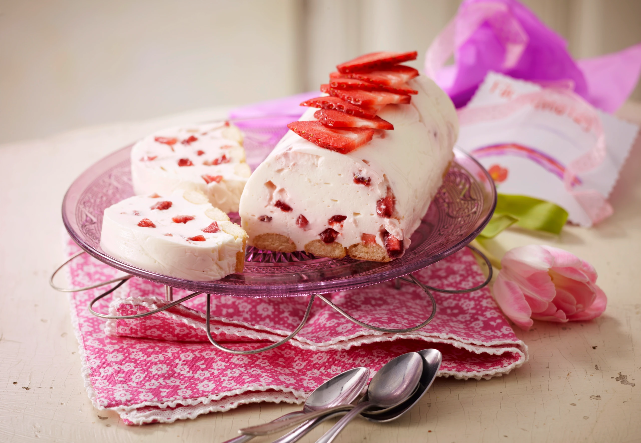 Joghurt-Holunderschnitte mit Erdbeeren