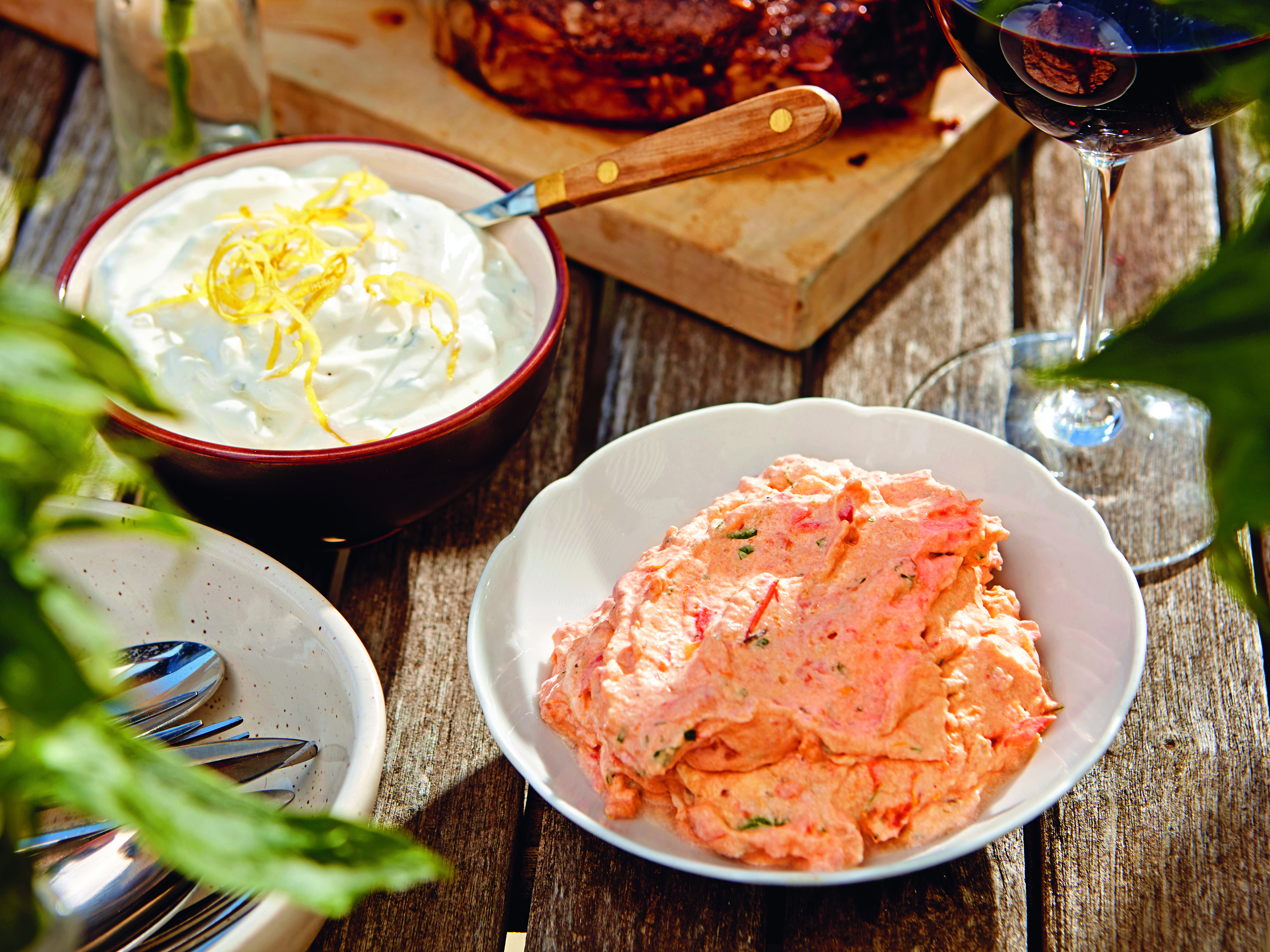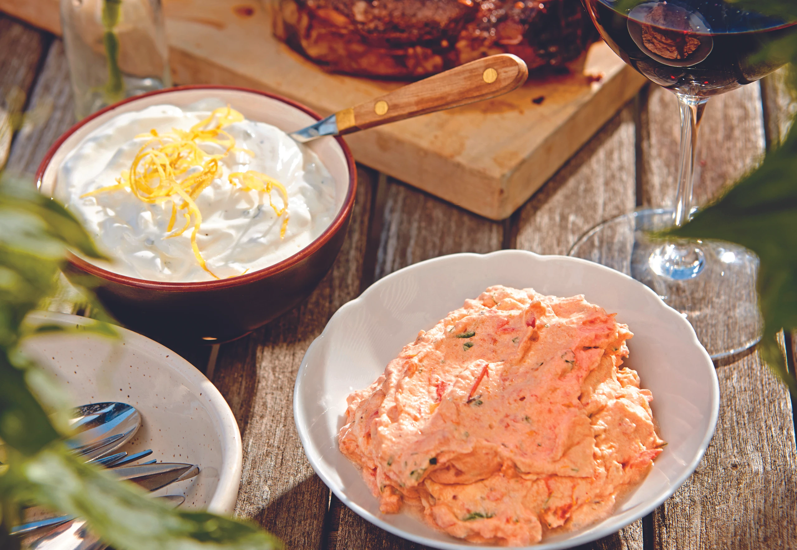 Dip anrichten und mit Zitronenzesten bestreuen.