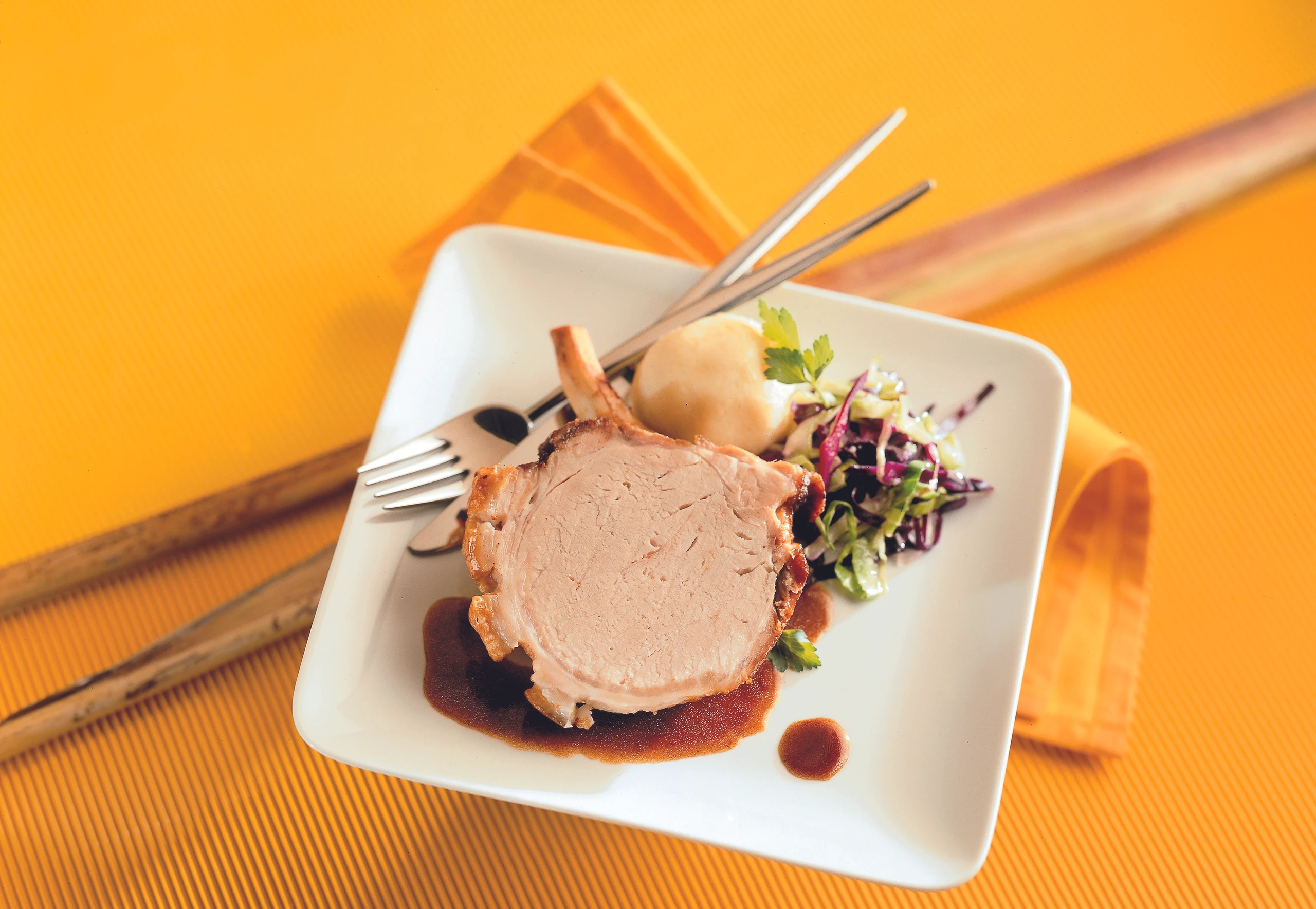 | 1 Stk. | Jung-Schweinsrücken mit Rippenknochen (ca. 1 1/4 kg) |