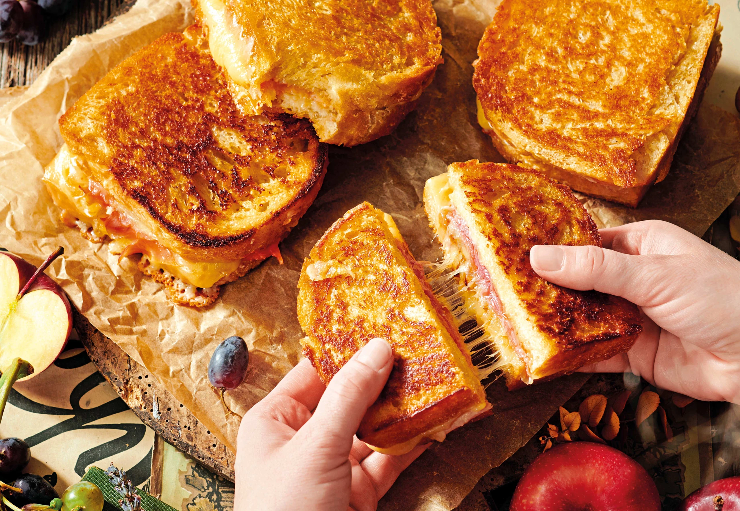 Bei mittlerer Hitze und geschlossenem Deckel beidseitig goldbraun braten. Käse-Sandwiches noch heiß genießen.