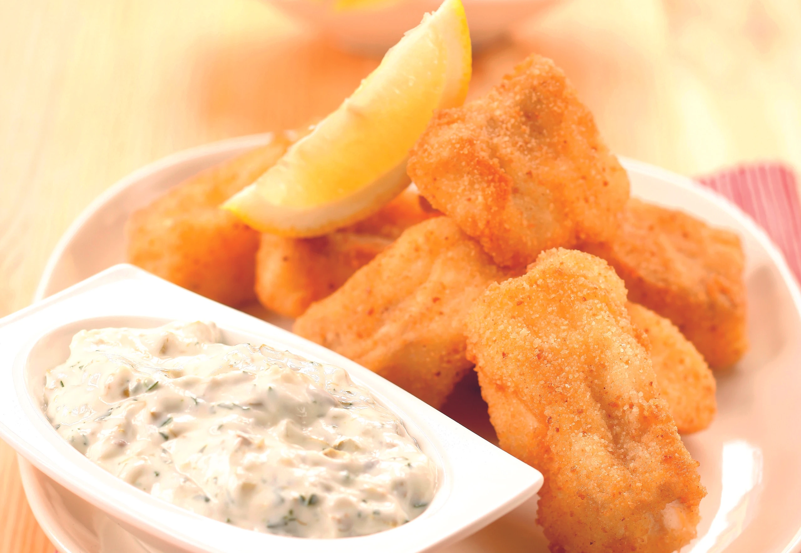 - Ca. 2 Finger hoch Öl erhitzen, Fischstücke darin goldgelb backen, mit einem Gitterlöffel herausheben und auf Küchenpapier abtropfen lassen.