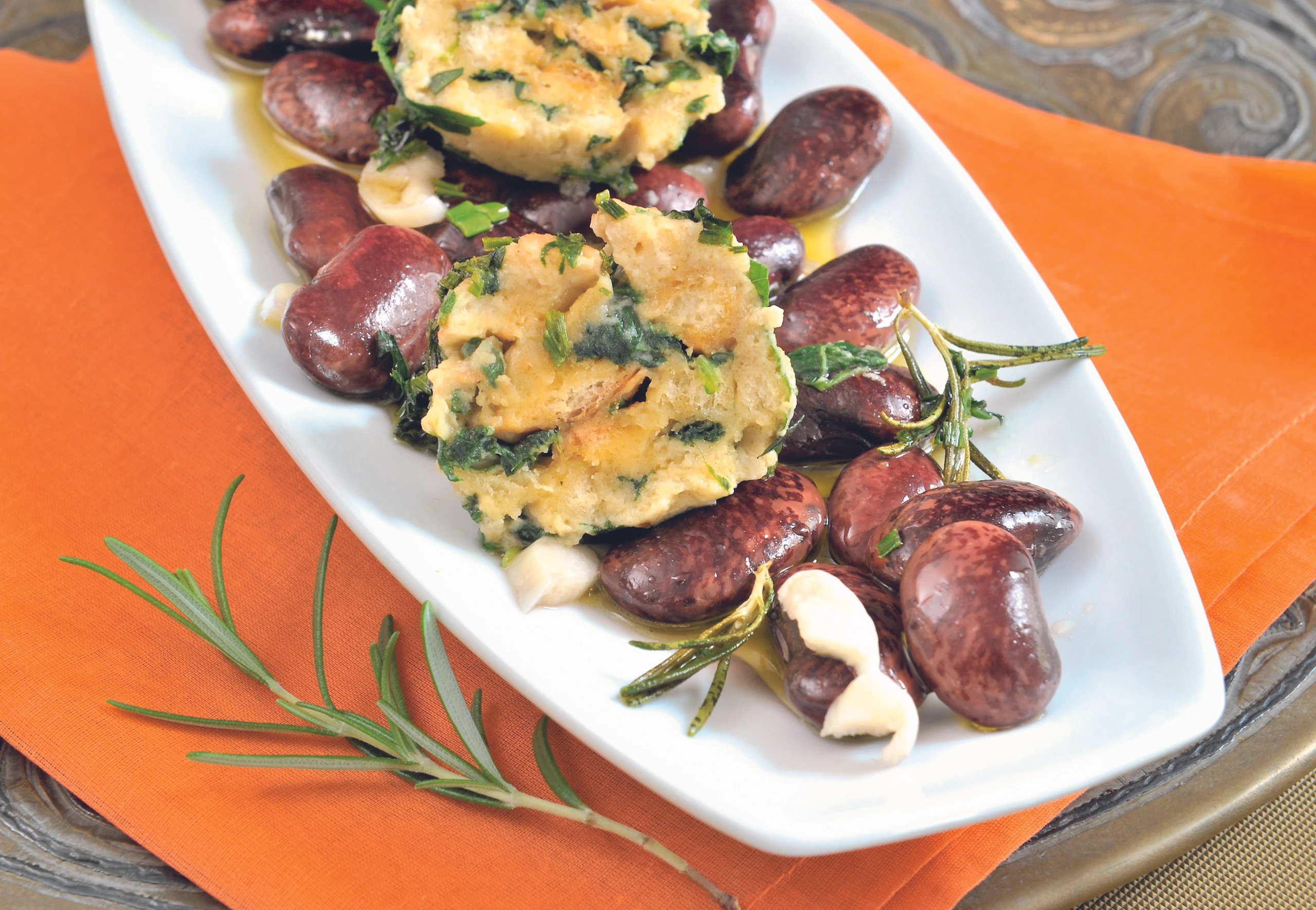 Käferbohnen im Sud mit Spinat-Kräuterknödel