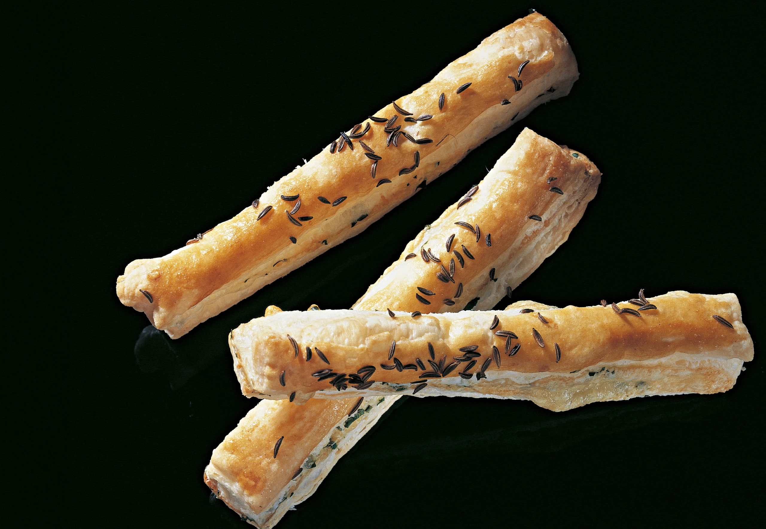 Teig mit verquirltem Ei bestreichen, mit Kümmel bestreuen und im vorgeheizten Rohr (mittlere Schiene) 13–14 Minuten backen.