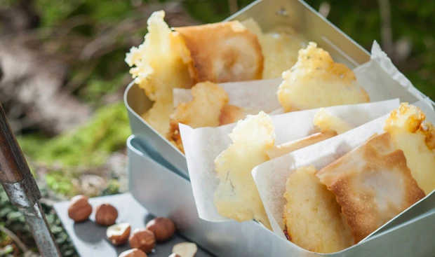 - Päckchen auf das Blech legen, mit Butter bestreichen und im Rohr (mittlere Schiene) ca. 15 Minuten backen. Tipp: Snack in eine Dose geben, Papier dazwischen legen.