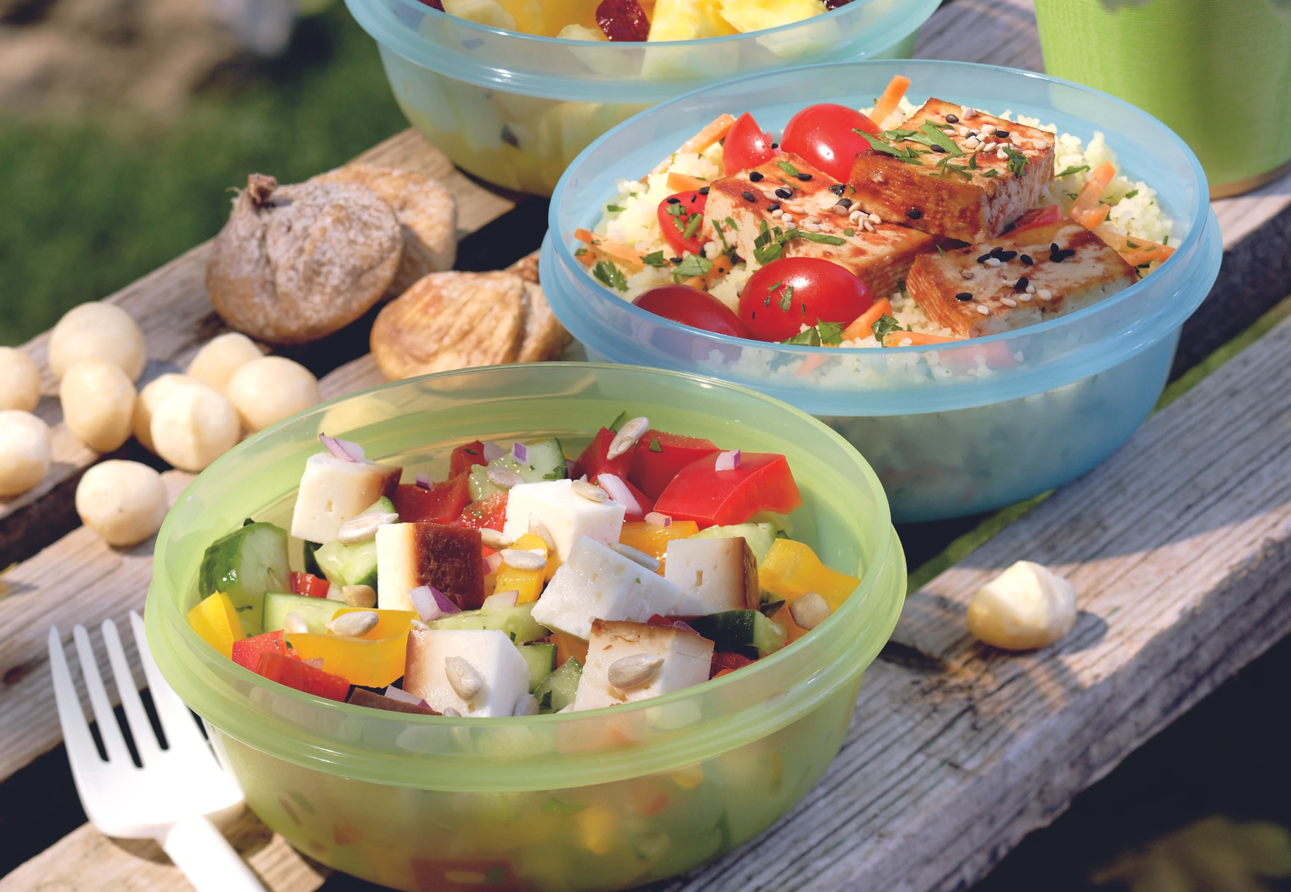 Zwiebel schälen und fein schneiden. Paprika putzen. Käse und Paprika in kleine Würfel, Gurke in kleine Stücke schneiden. Alles mit Essig und Öl vermischen, salzen und pfeffern.