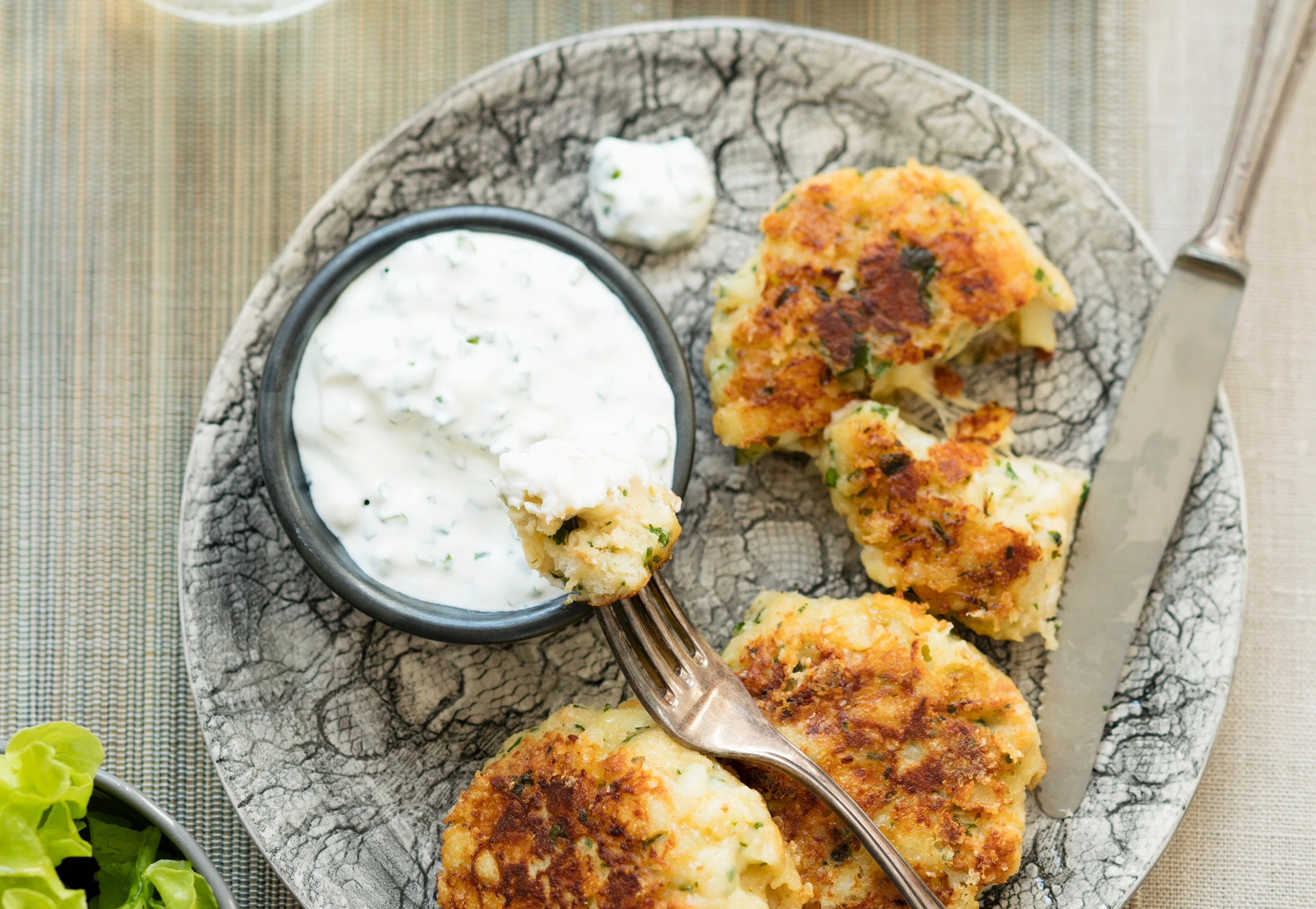 In einer Pfanne 6 EL Öl erhitzen. Laibchen darin bei mittlerer Hitze beidseitig braten (dauert ca. 8 Minuten); dabei öfter mit Bratfett übergießen. Laibchen herausheben, auf Küchenpapier abtropfen lassen und mit der Sauce anrichten. Als Beilage passen Blattsalate.