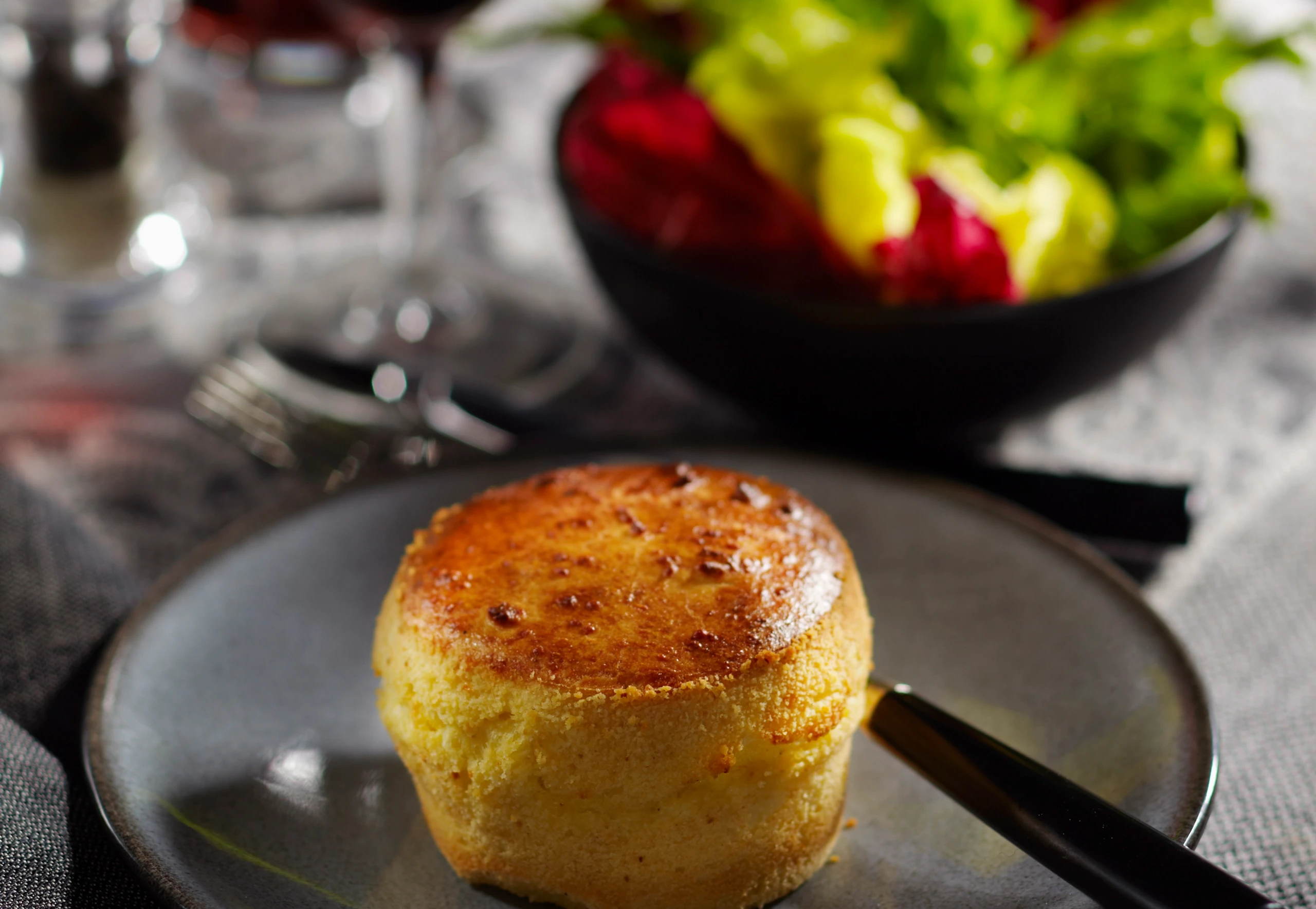 Soufflés aus dem Rohr nehmen und sofort servieren. Dazu passen mit Apfelbalsam und Traubenkernöl marinierte gemischte Blattsalate.