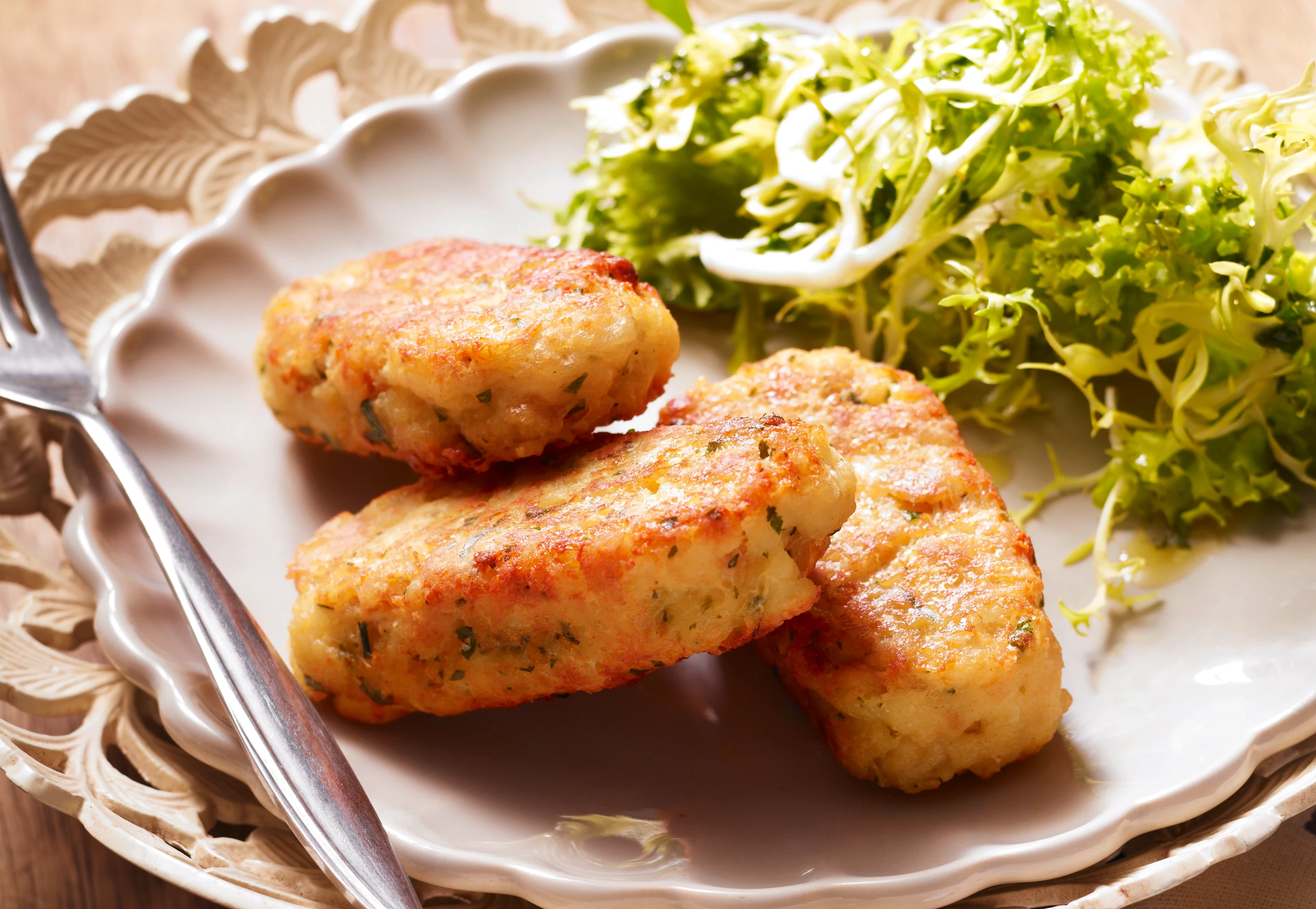 Milch und Ei versprudeln, über die Semmelwürfel gießen und ca. 5 Minuten ziehen lassen. Petersilie, Käse und Mehl in die Masse rühren, mit Salz, Pfeffer und Muskat würzen. Aus der Masse 6 Stangerl formen.