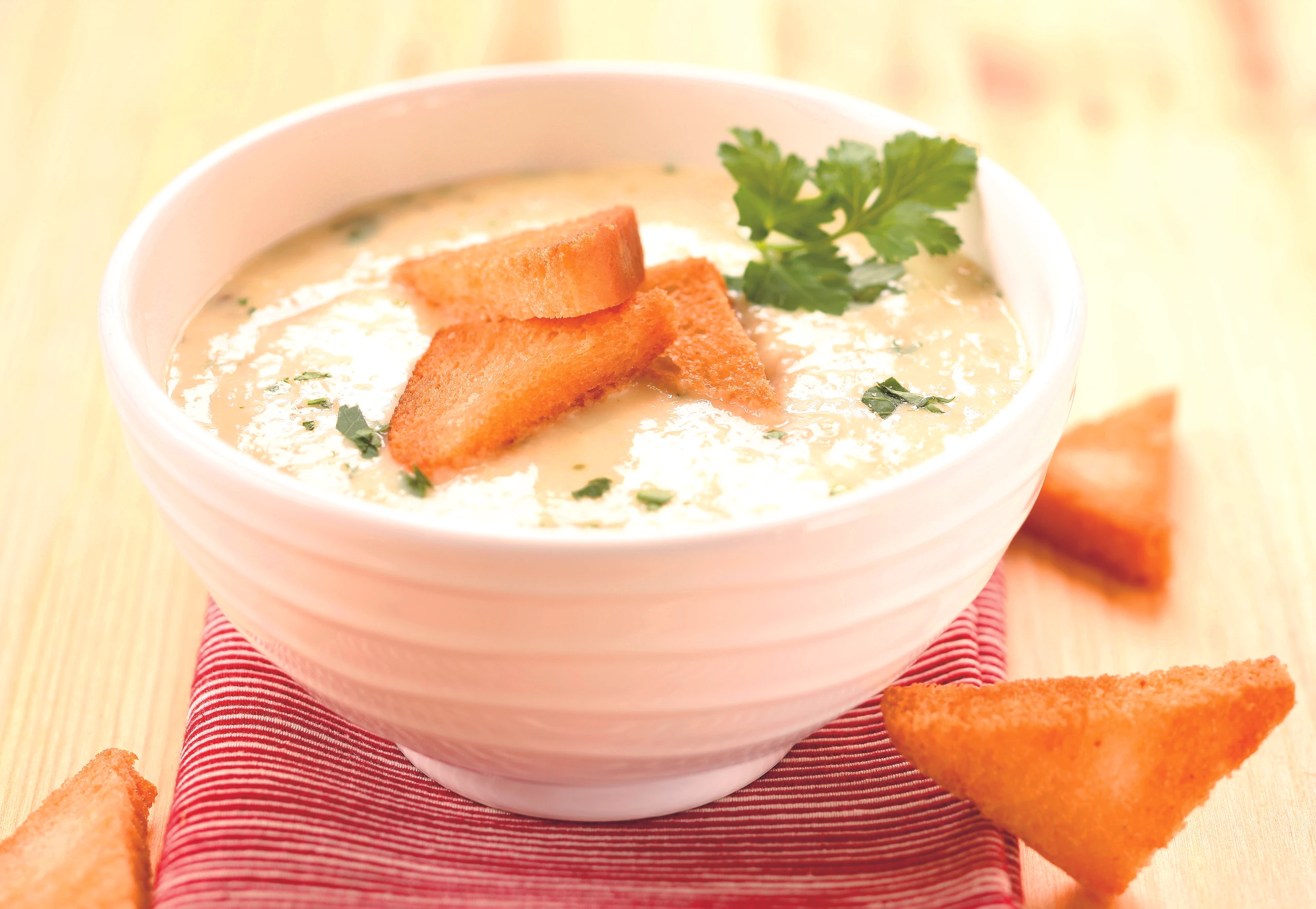 Übriges Brot klein schneiden, in 2 EL Butter anschwitzen, Wein und Suppe zugießen, verrühren, 10 Minuten köcheln. Milch und 1 Prise Kümmel zugeben und aufkochen. Käse, Salz, Pfeffer, Muskat, zerdrückten Knoblauch, Petersilie und Obers mit dem Schneebesen unterrühren. Suppe mit den Brotstücken bestreut servieren.