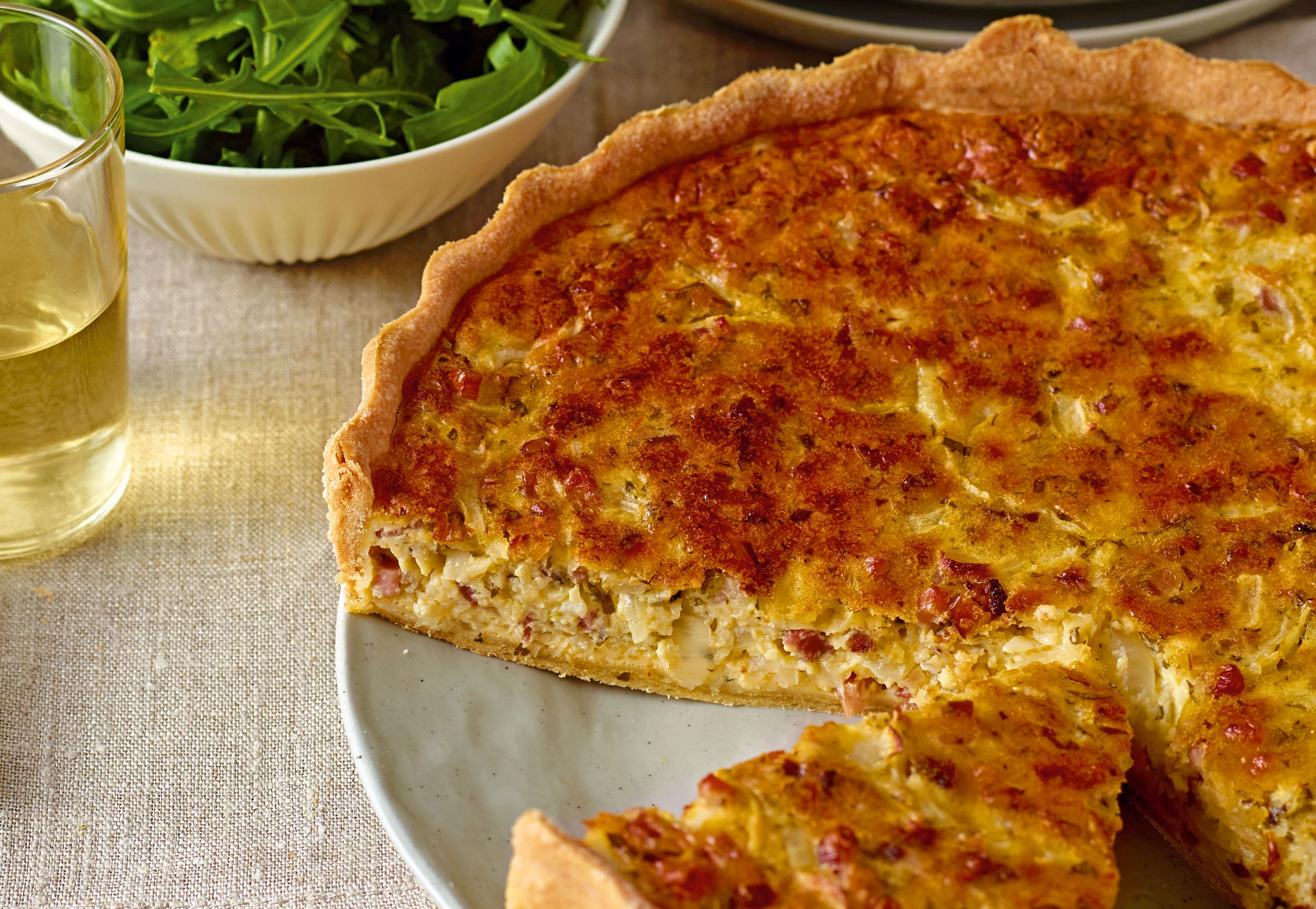 Käsetarte mit Speck und Rucolasalat