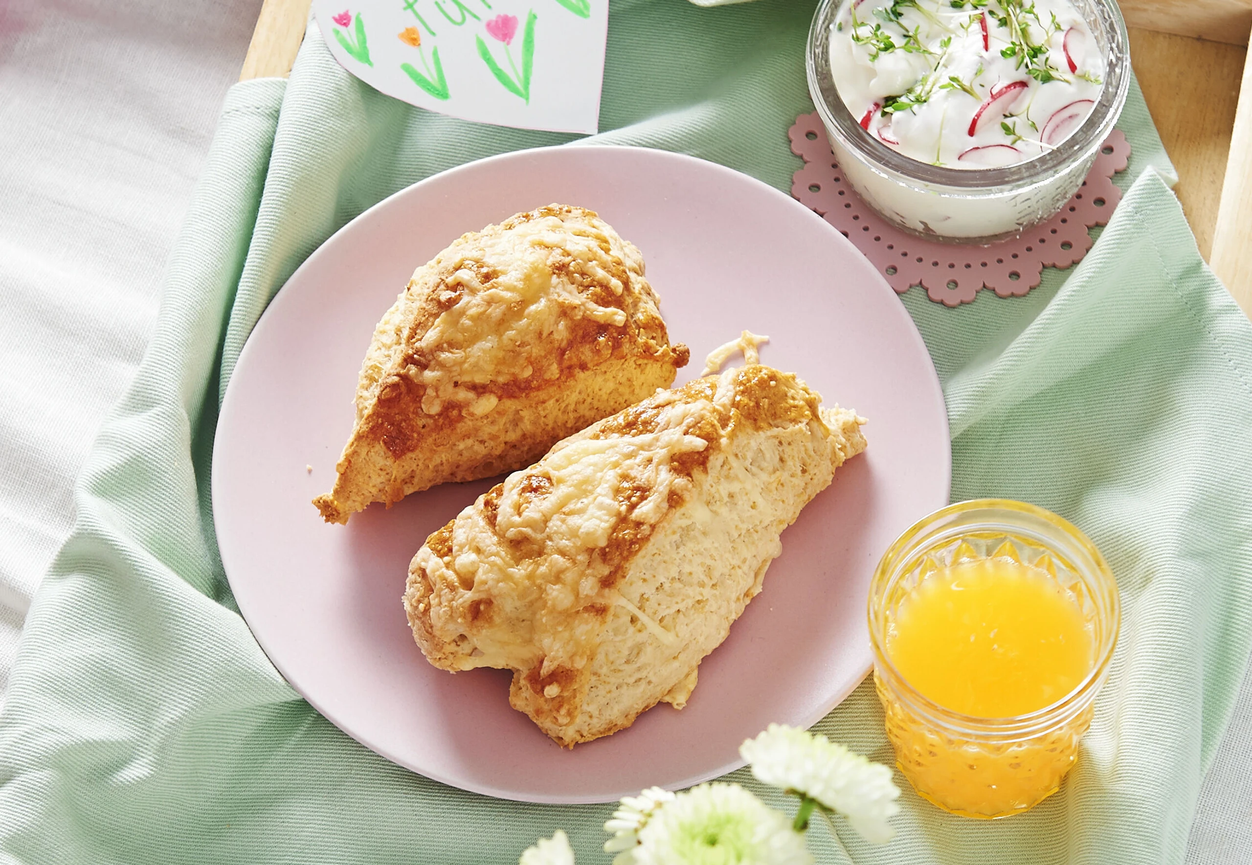 Selbstgebackenes Käseweckerl mit Radieschen-Aufstrich