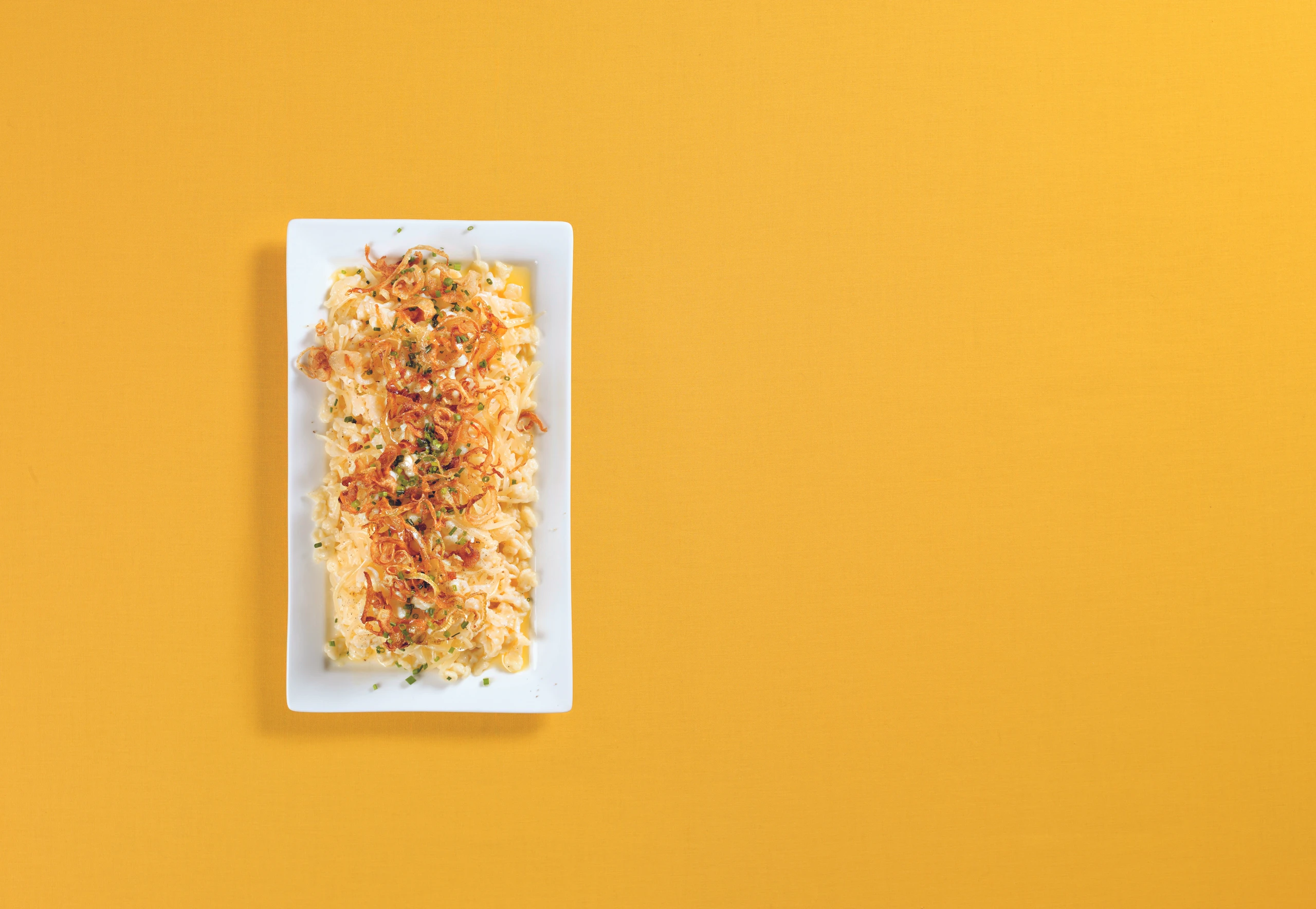 Knöpfle herausheben, abtropfen lassen und lagenweise in eine Form schichten, jede Lage mit Käse bestreuen, mit Knöpfle abschließen. Knöpfle mit 1 Schöpfer Kochwasser übergießen, mit Röstzwiebel bestreuen und mit Butter übergießen. Knöpfle pfeffern und mit Schnittlauch bestreut servieren.