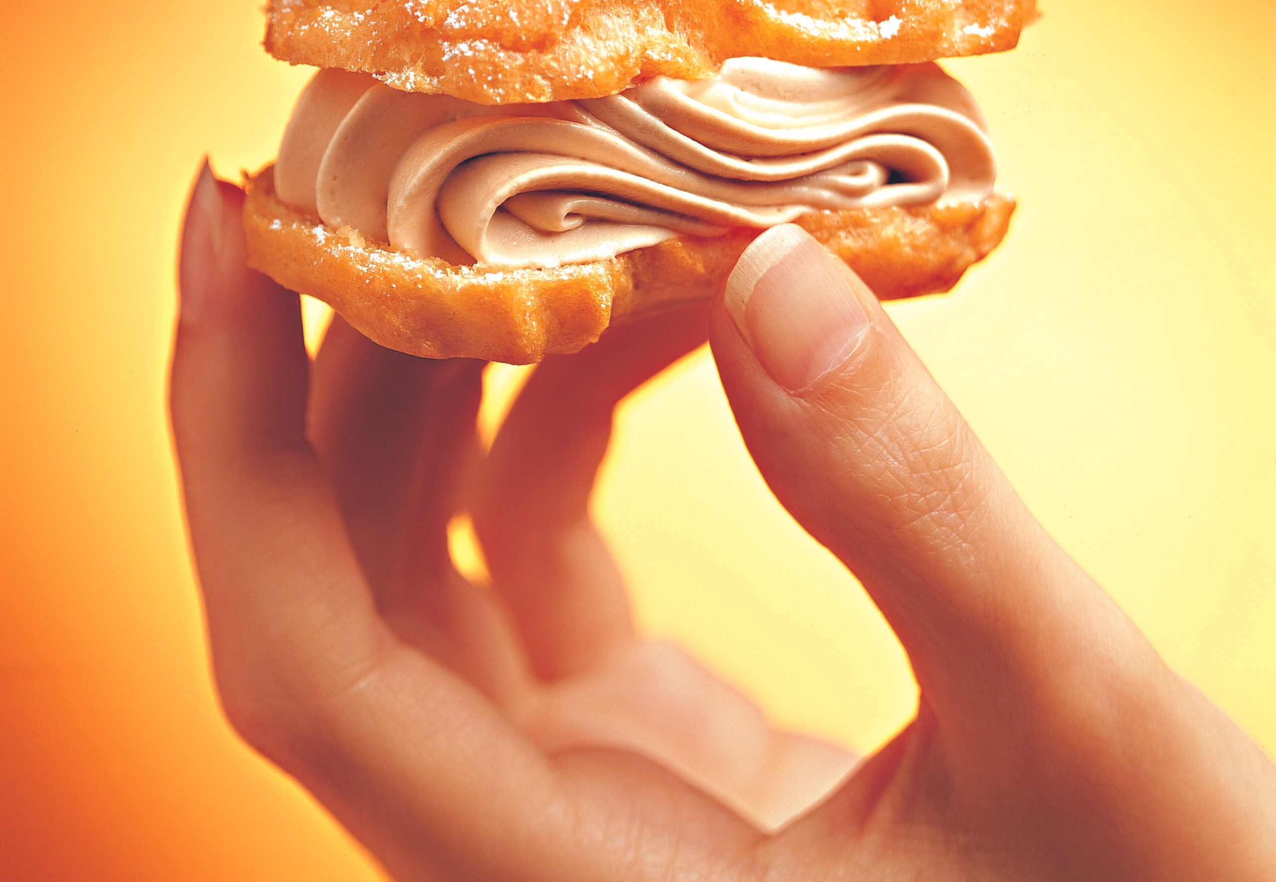 Stangerln durchschneiden. Creme in einen Dressiersack mit Sterntülle füllen und die Stangerln damit füllen. Mit Staubzucker bestreut servieren.