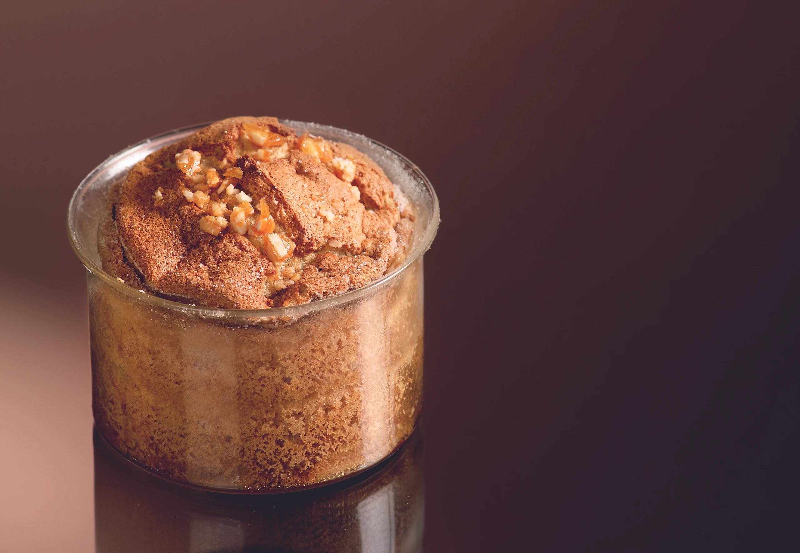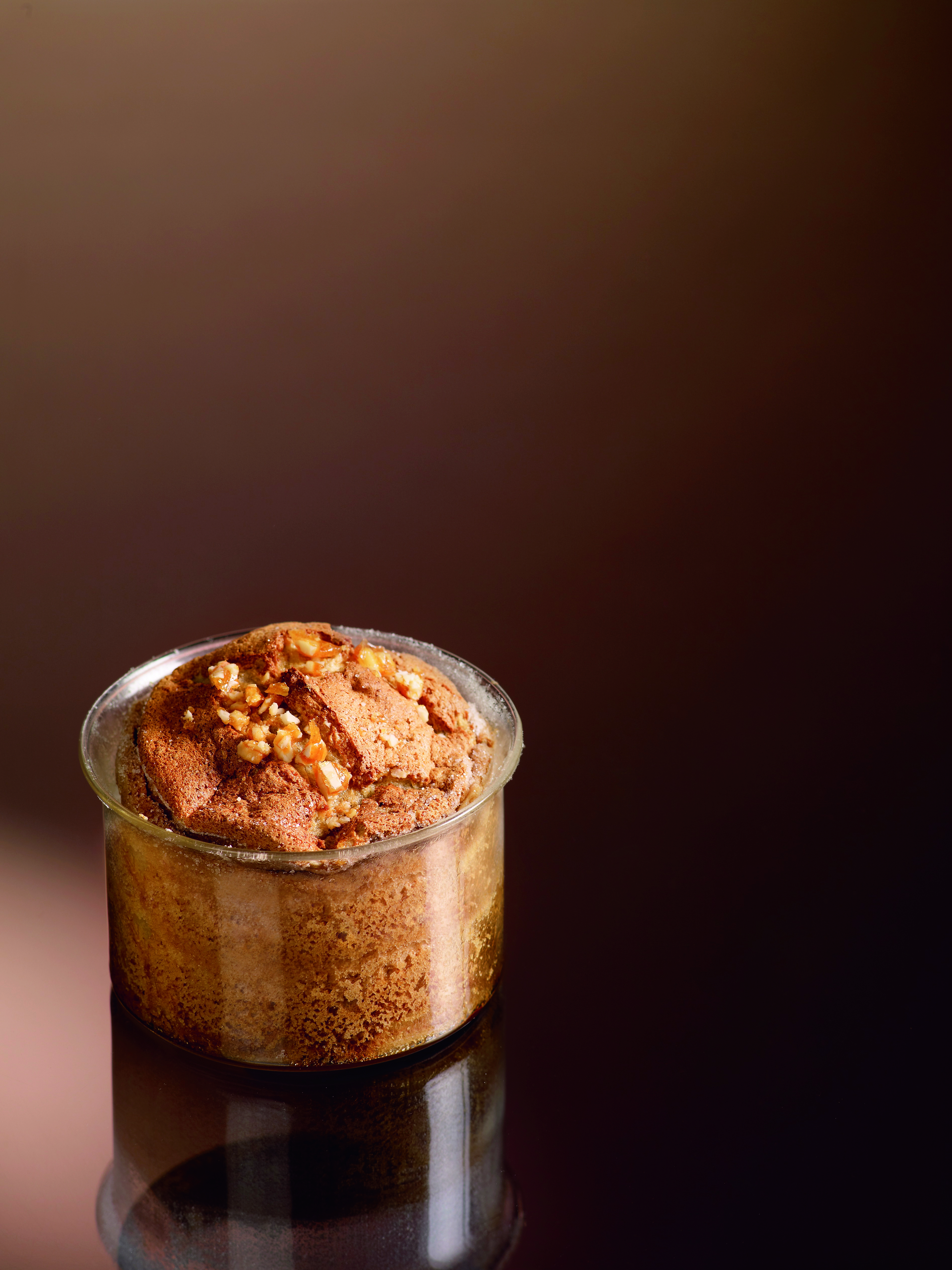 Förmchen bis knapp unter den Rand mit der Masse füllen und in die Wanne stellen; die Förmchen sollen halbhoch im Wasser stehen. Soufflés ca. 18 Minuten backen. Aus dem Rohr nehmen, mit Krokant bestreuen und sofort servieren.