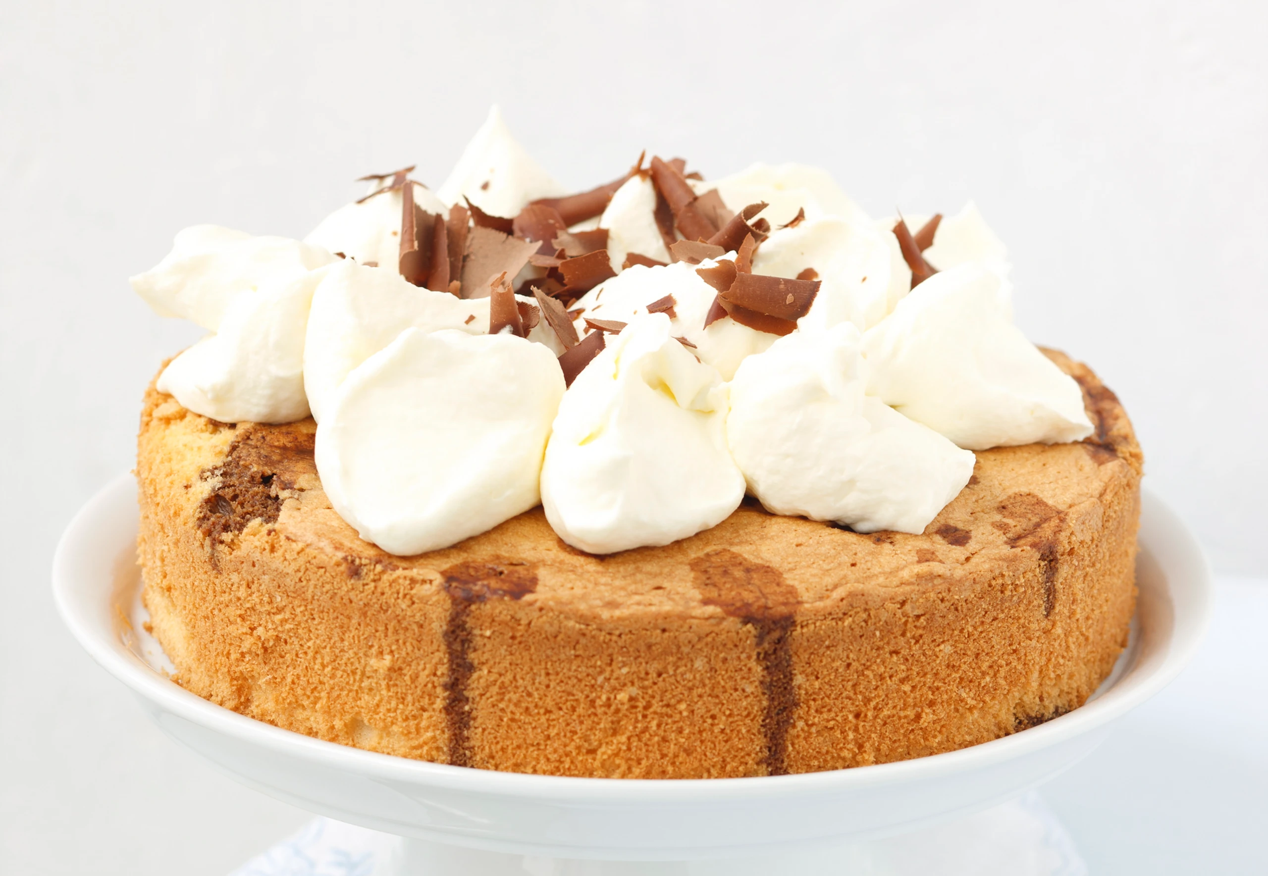 Für die Garnitur Obers mit Sahnesteif und 1 EL Staubzucker aufschlagen und mit einem Löffel gleichmäßig auf der Torte verteilen, mit Schokospänen garnieren.