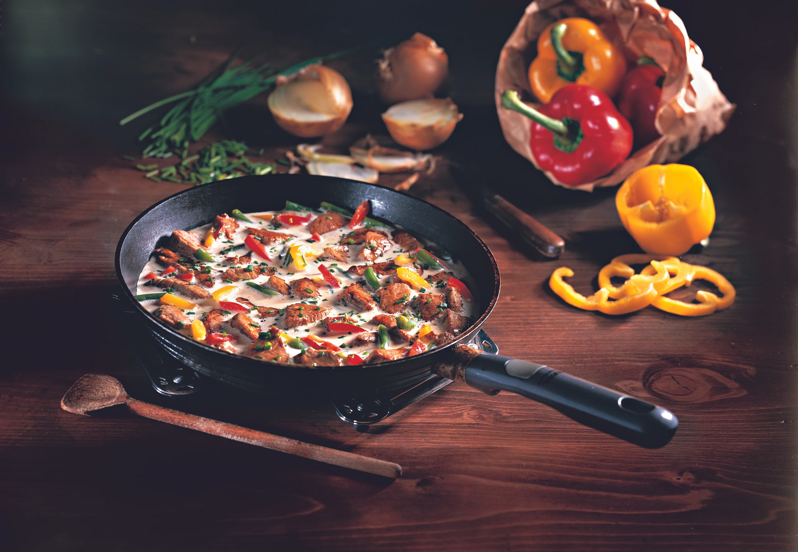 Kalbfleischpfanne mit Paprika und Fisolen