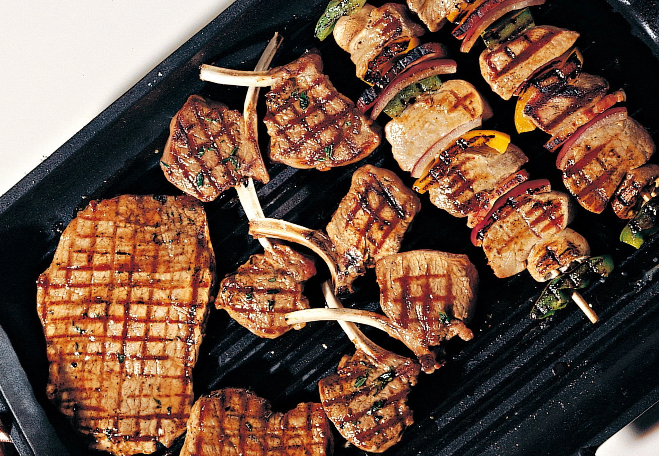 Kalbsschnitzel, Lammkoteletts und Hirtenspieße vom Grill
