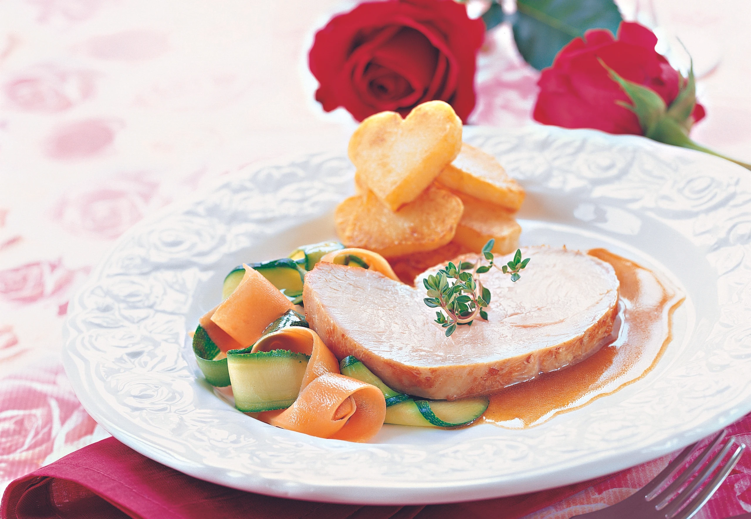 Kalbsbraten mit Thymiansaft und Gemüsenudeln