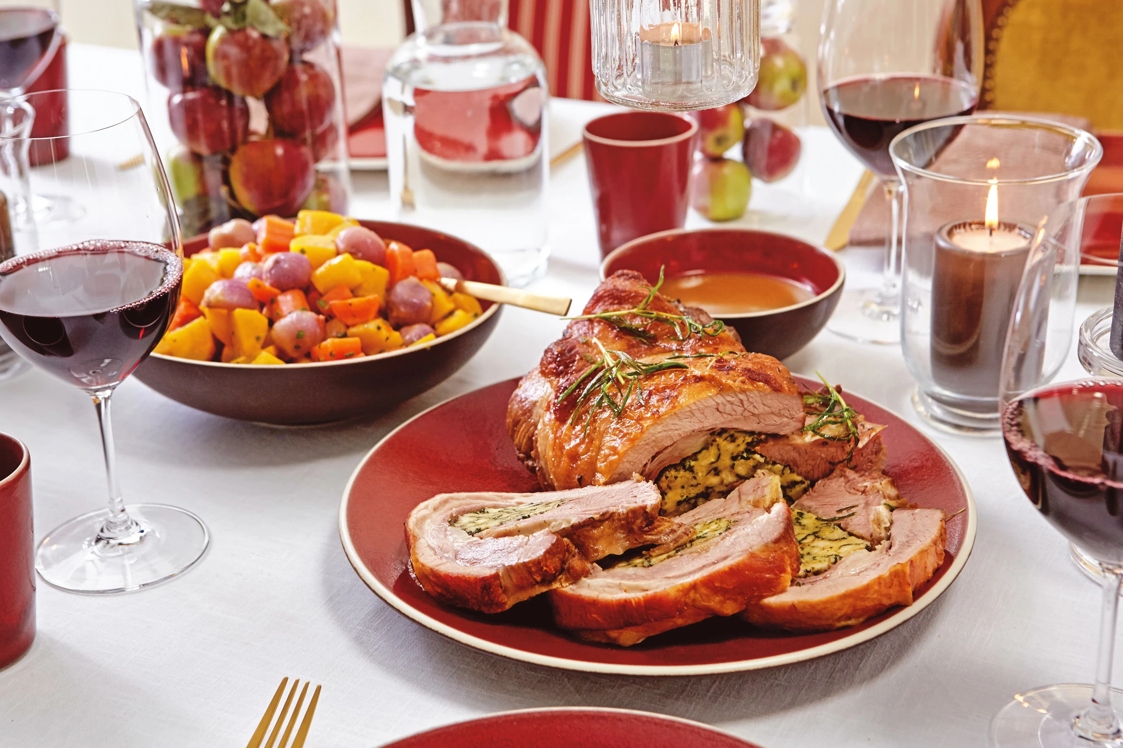 Kalbsbrust mit Semmel-Mangoldfülle und Wurzelgemüse