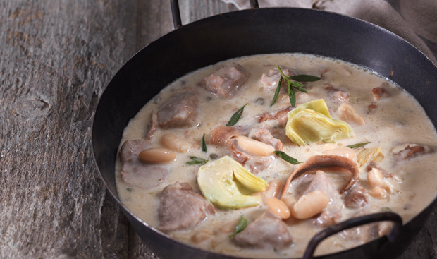 - Artischocken abtropfen lassen. Obers, Artischocken und Zitronenschale zum Ragout geben. Stärke mit wenig Wasser glatt rühren, in die Sauce gießen, kurz erhitzen. Ragout mit Salz, Pfeffer und Bohnenkraut abschmecken.