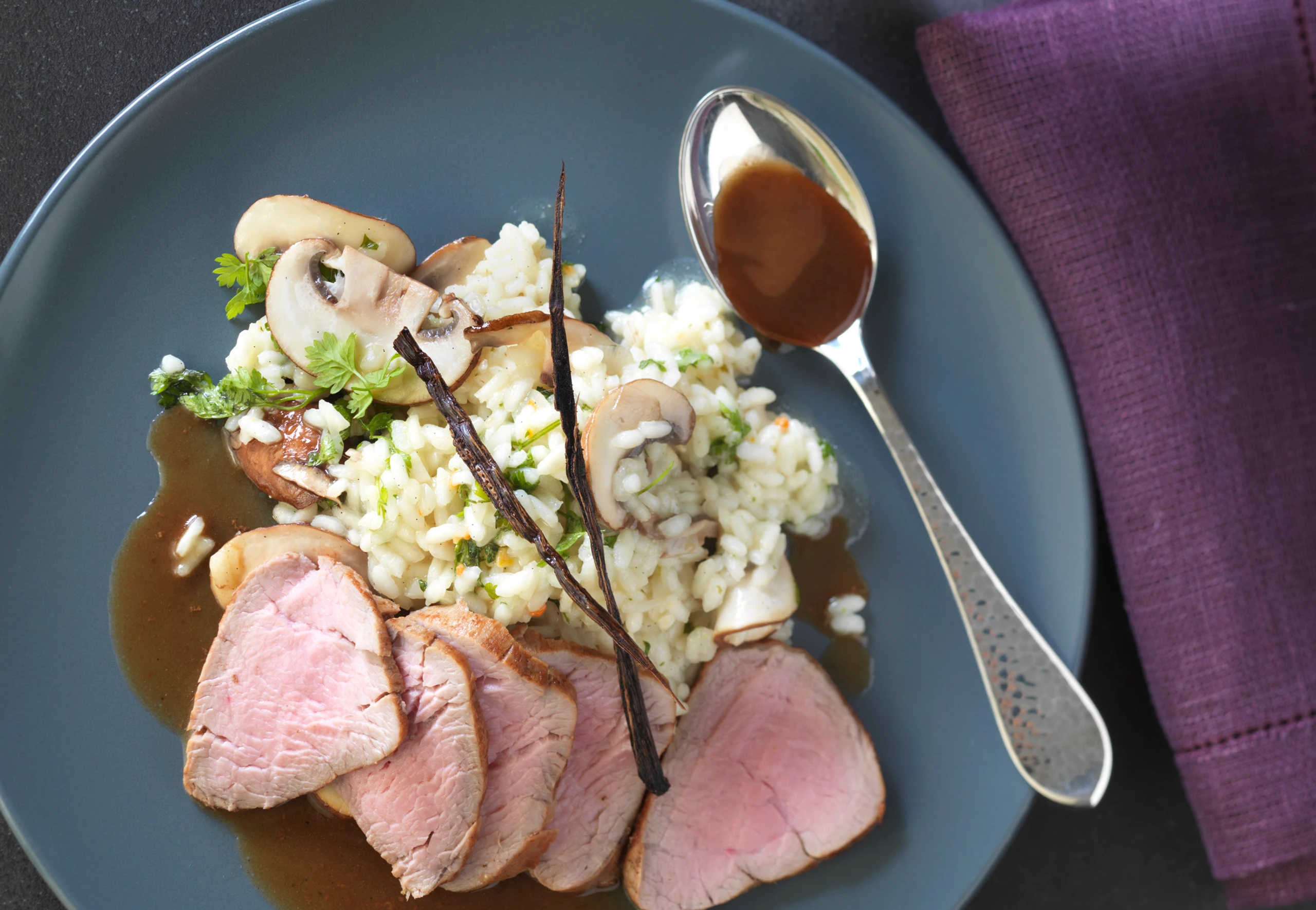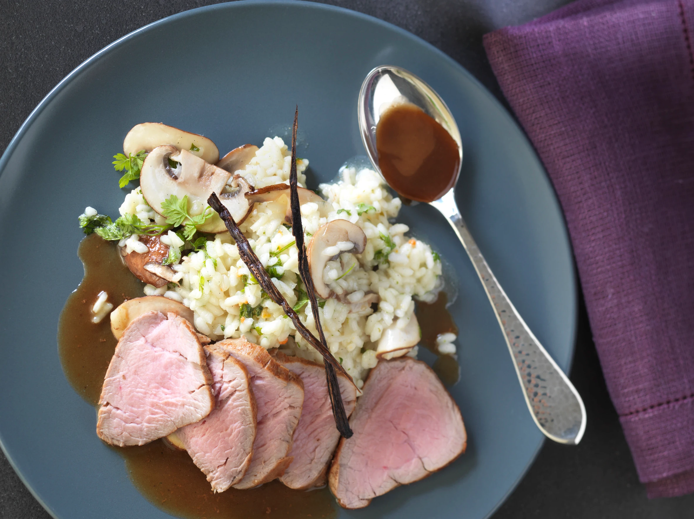 Kalbsfilet mit Champignons und Kerbel-Vanillerisotto