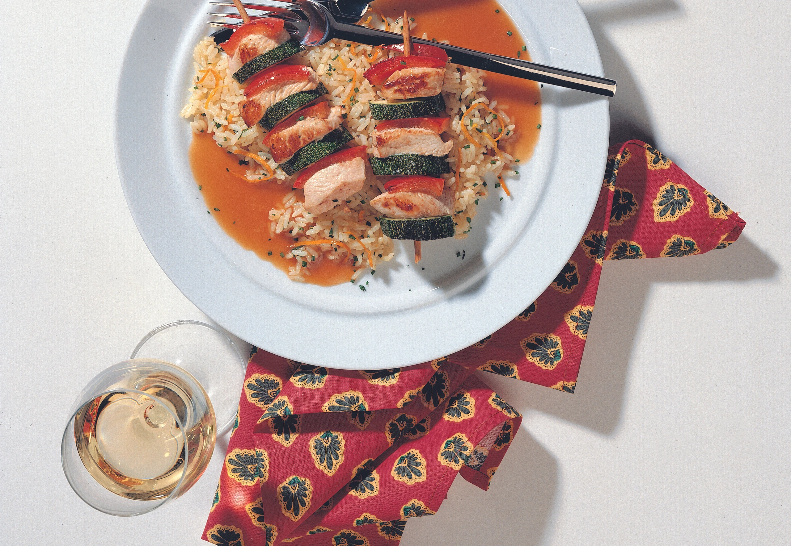 Kalbsfilet-Gemüse-Spieße mit Zitrusreis