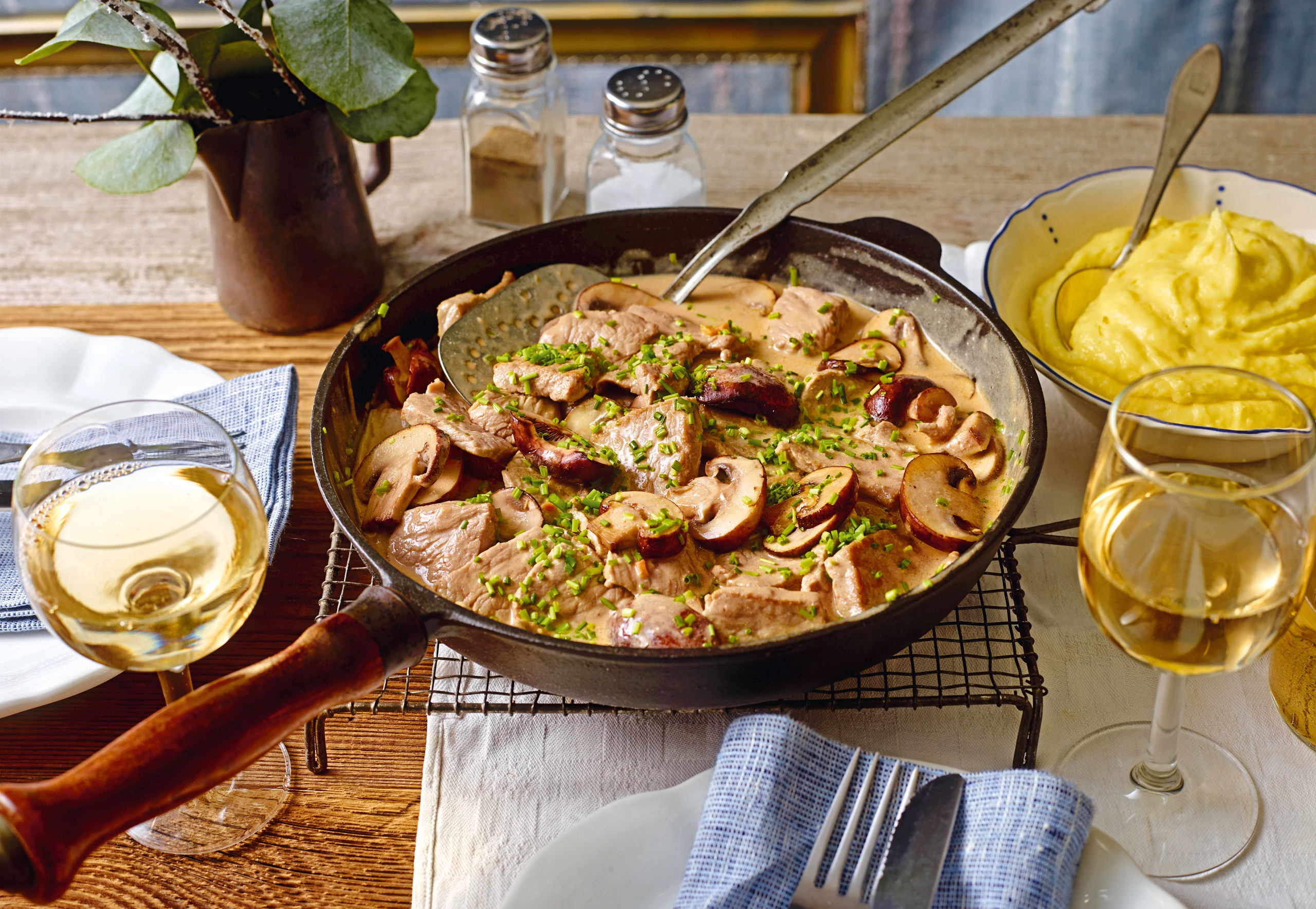 Kalbsgeschnetzeltes mit Champignons und Erdäpfelpüree
