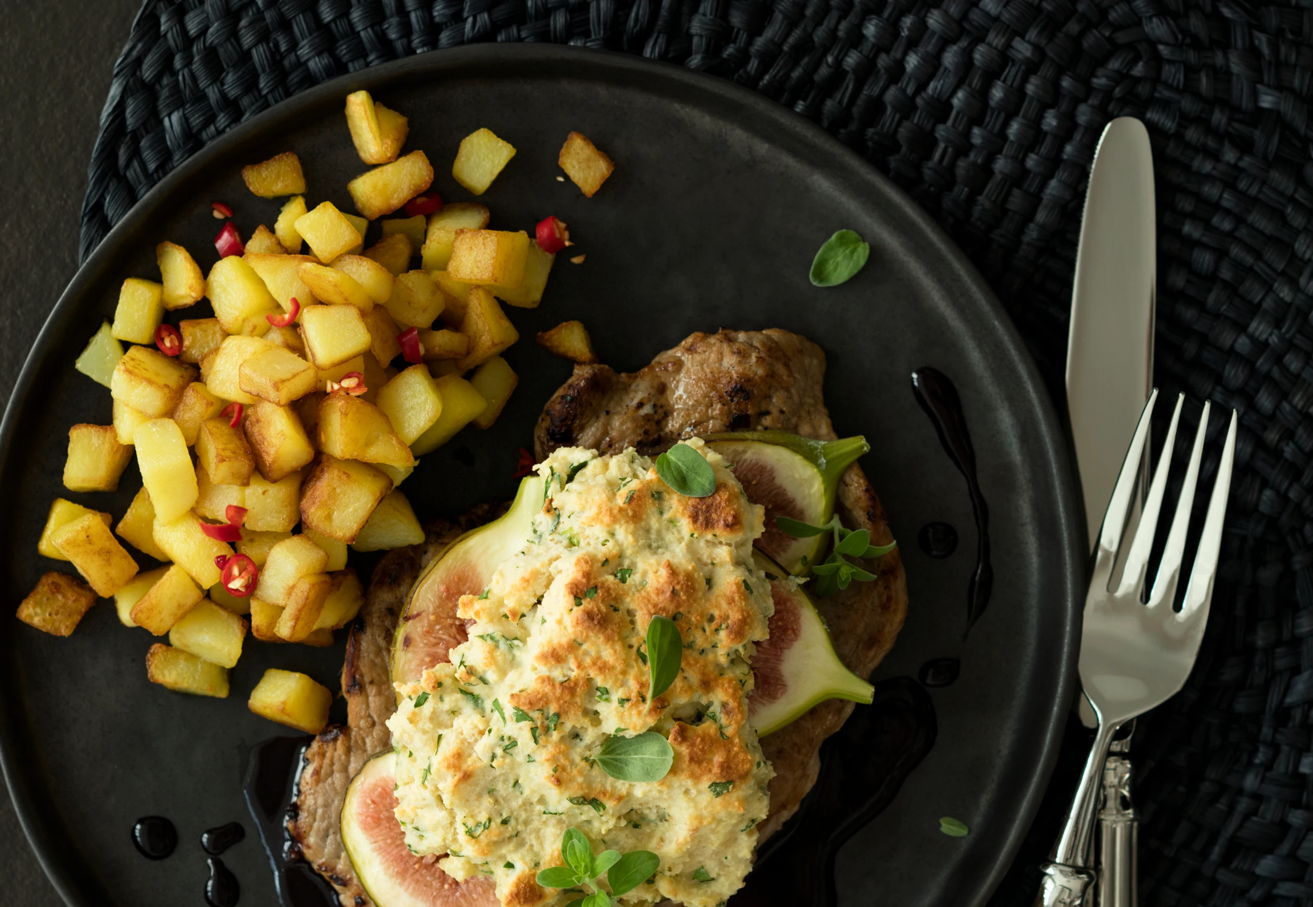 Kalbsschnitzel mit Ricottakruste und Feigen