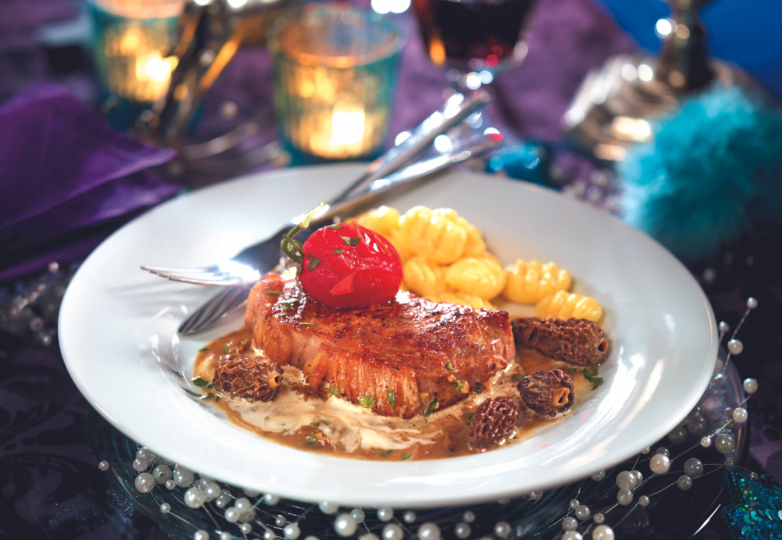 Kalbssteak mit Morcheln und Vanille-Gnocchi