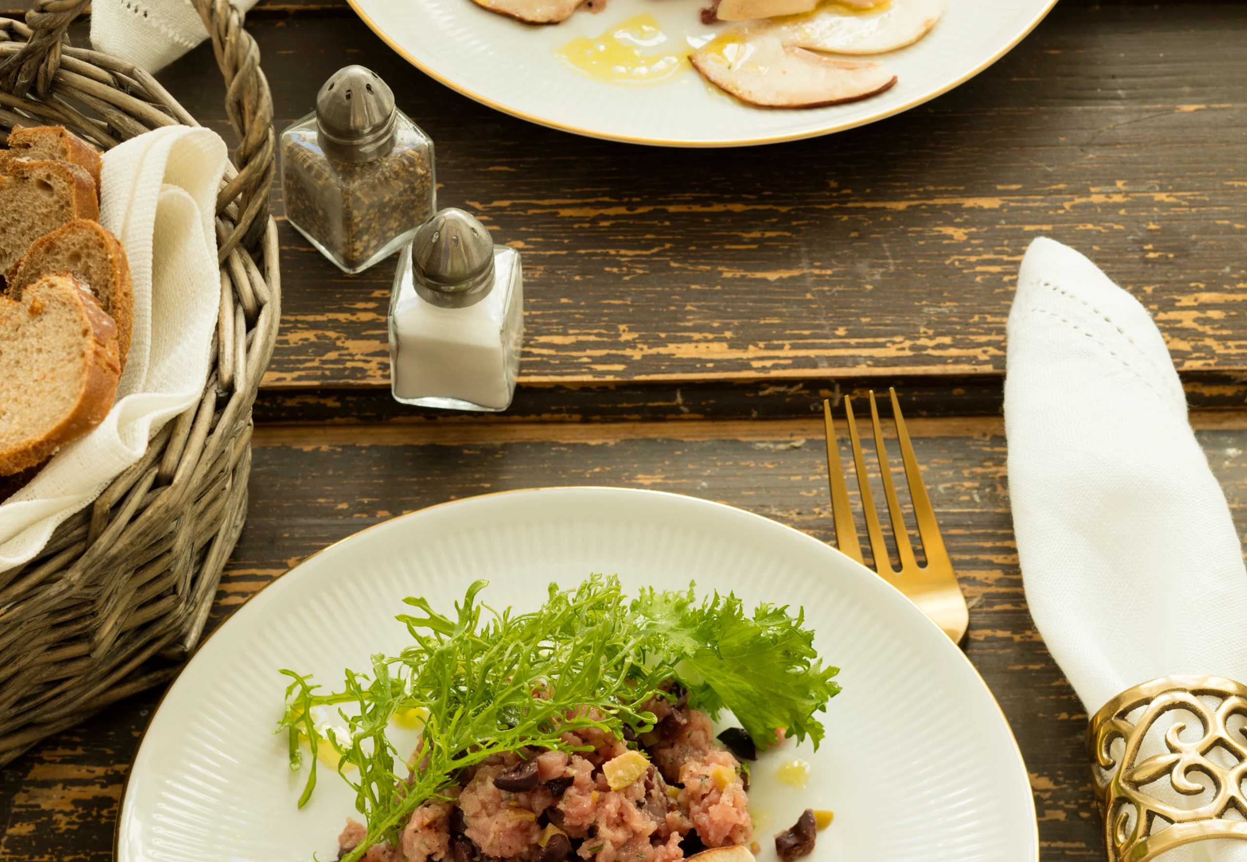 Kalbstatar mit Oliven und Steinpilzen