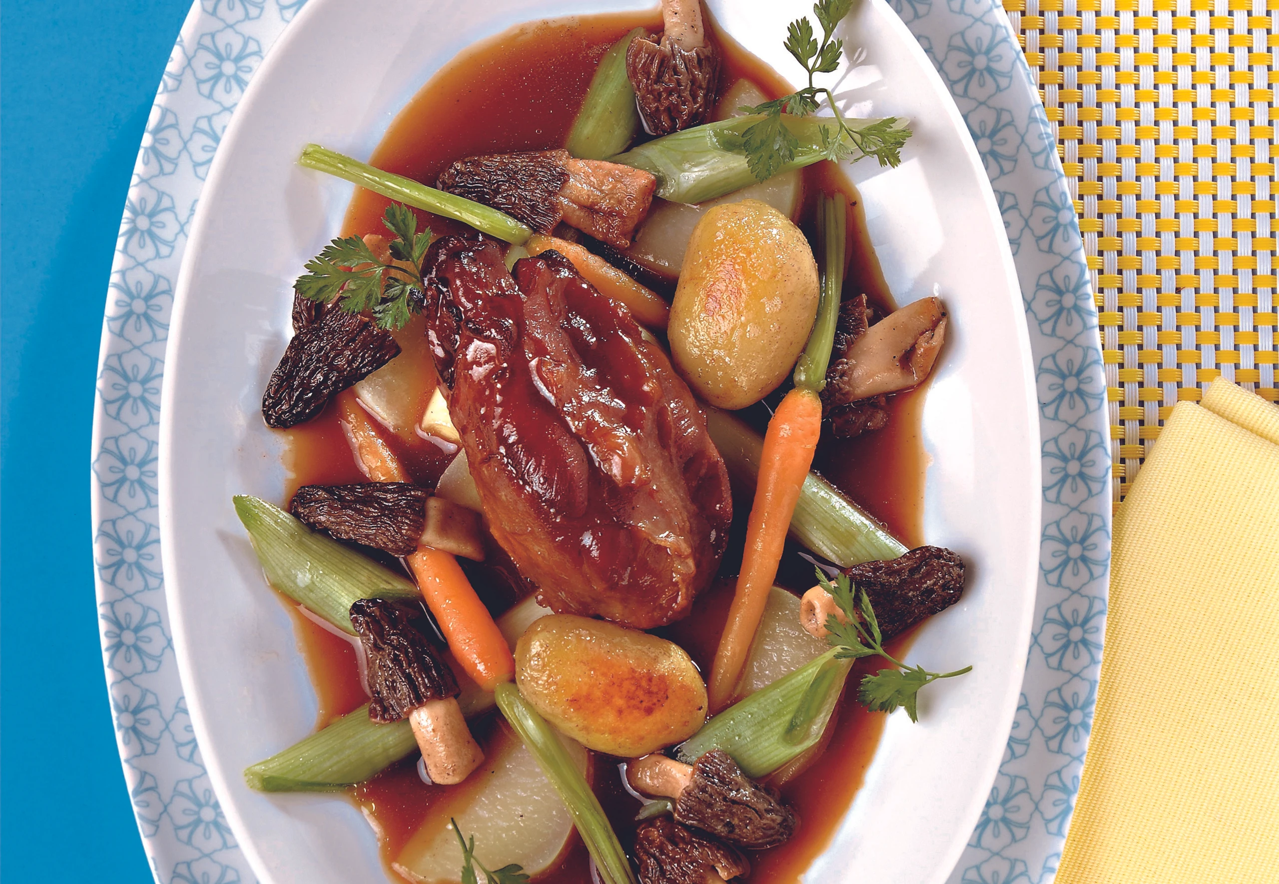 Gemüse mit der Butter, Salz und 3 EL Wasser kurz zugedeckt dünsten, es muss knackig bleiben. Kalbsvögerl mit Sauce, Gemüse, Erdäpfeln und Morcheln anrichten, mit Kerbel garnieren.