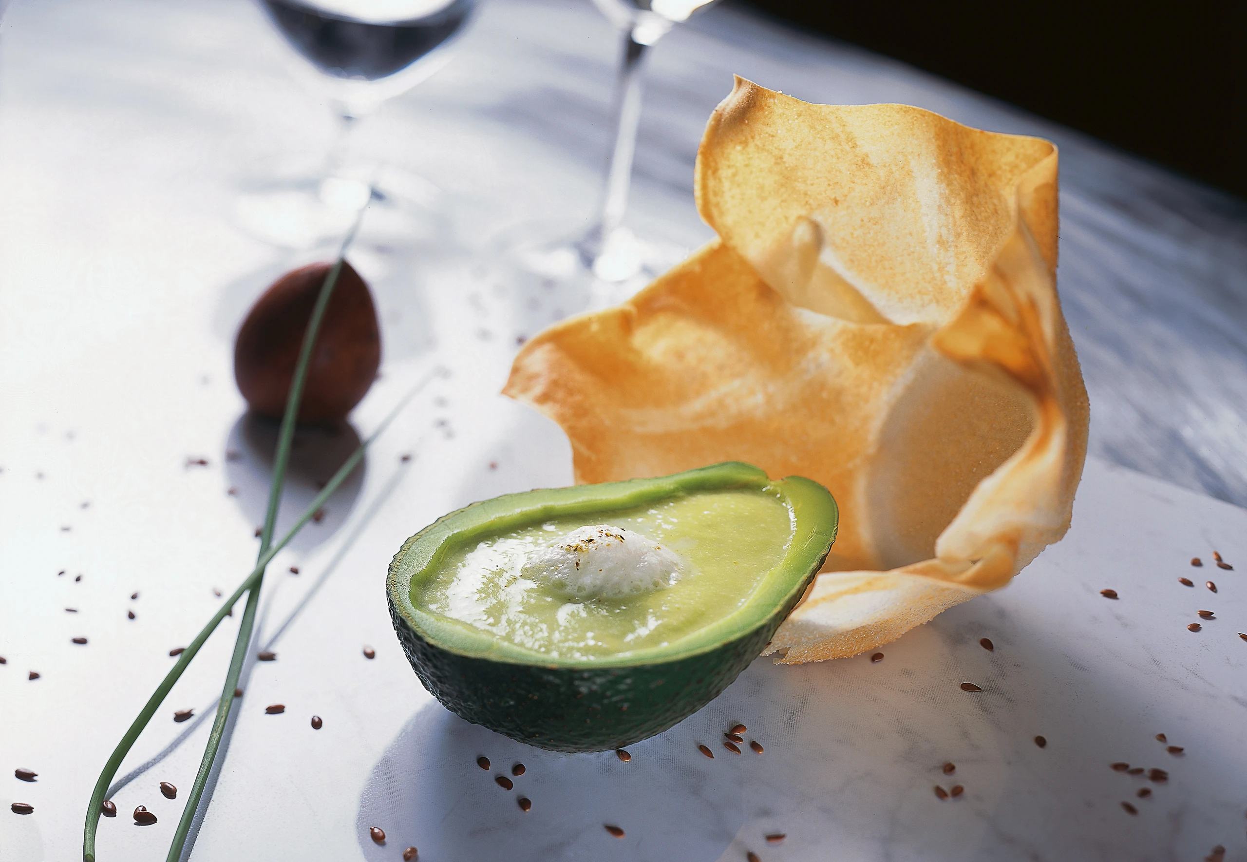Kalte Avocadoschale mit Knusperblatt