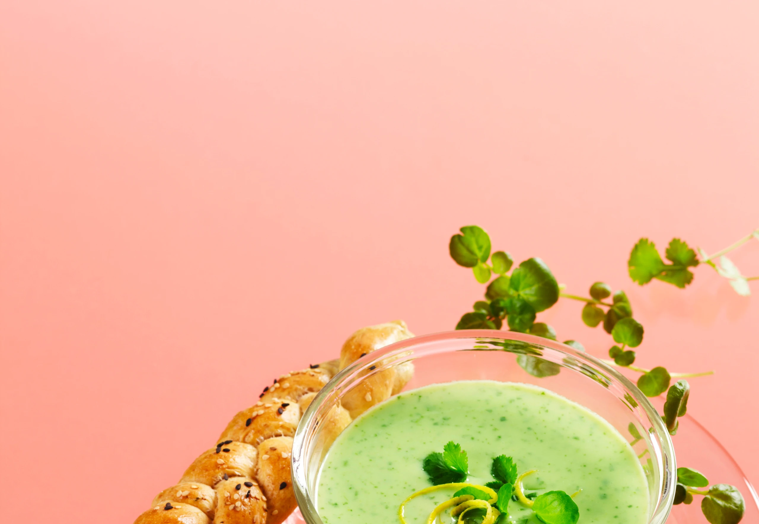 Kalte Avocadosuppe mit Thymian-Zöpfchen