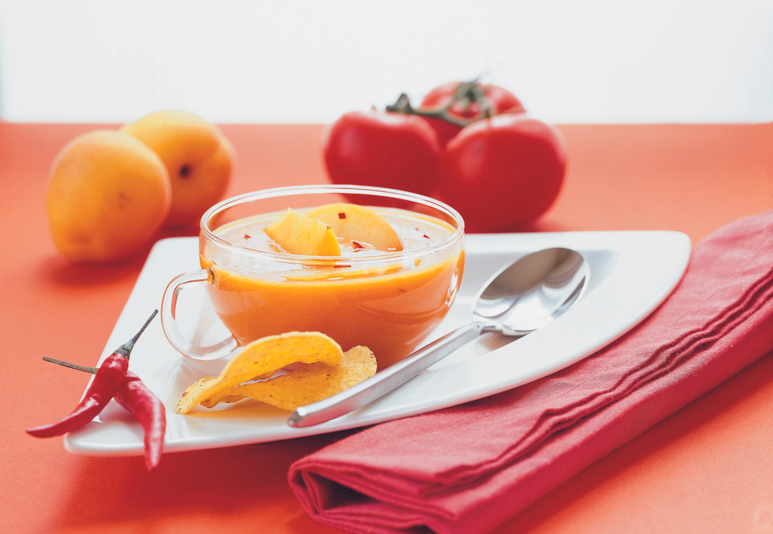 Kalte Paradeiser-Marillen-Suppe mit Chili