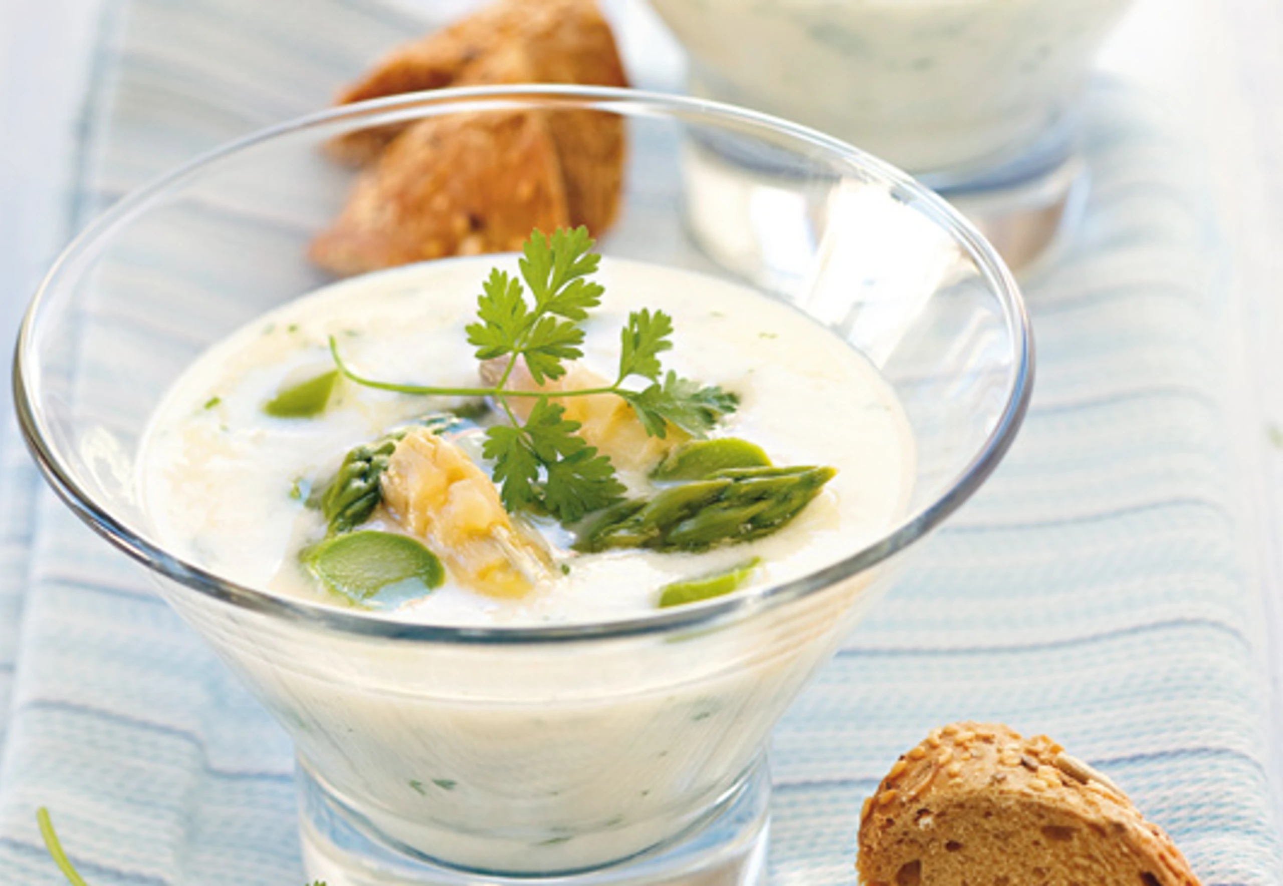 Übrigen weißen Spargel klein schneiden und in der Suppe gut weich kochen. Suppe vom Herd nehmen, pürieren, mit Salz, Pfeffer und Limettensaft abschmecken. Buttermilch, Kerbel und die Hälfte vom Spargel einrühren. Suppe anrichten und mit übrigem Spargel garniert servieren.