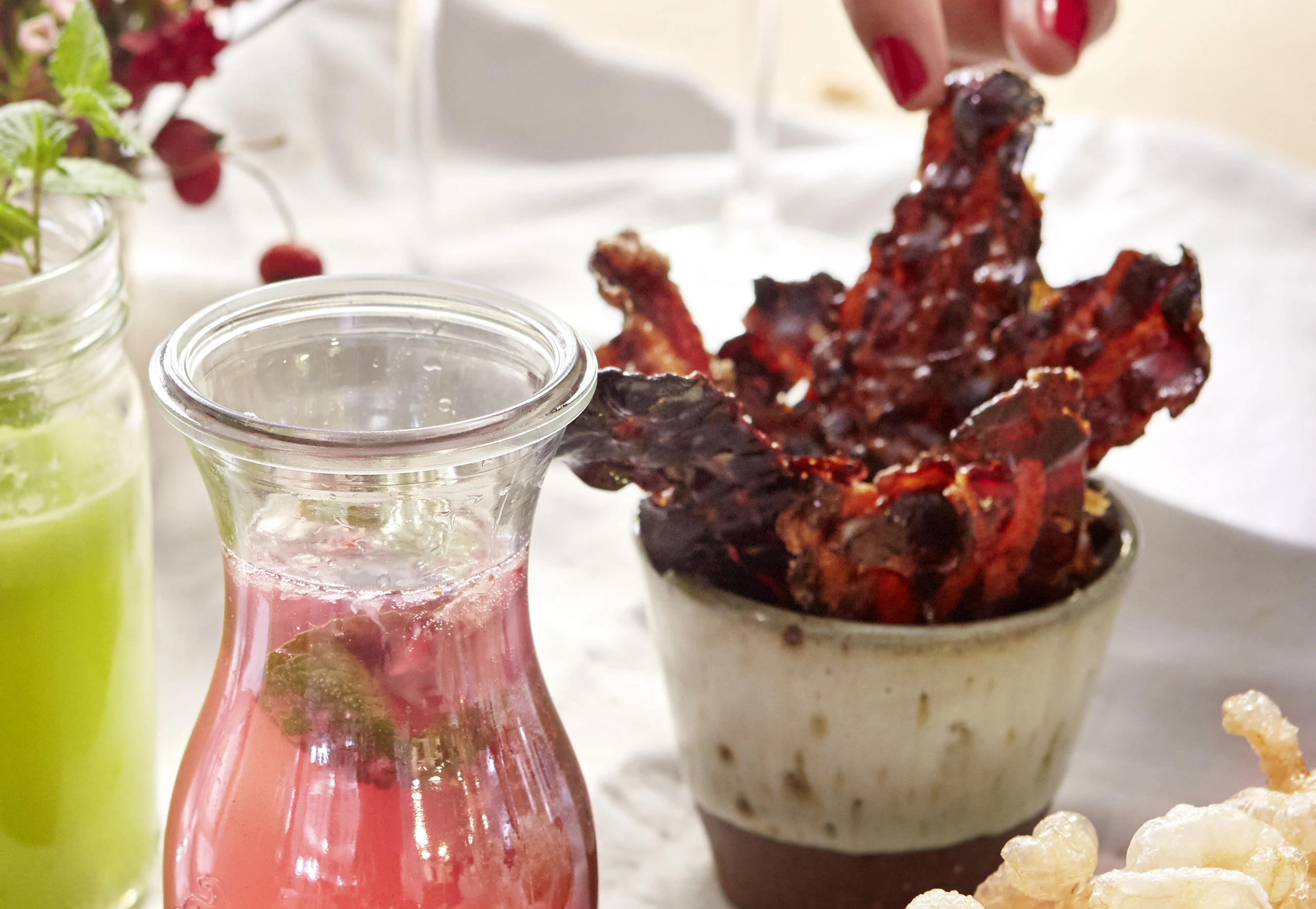 - 250 g Frühstücksspeck (3 mm dicke Scheiben)