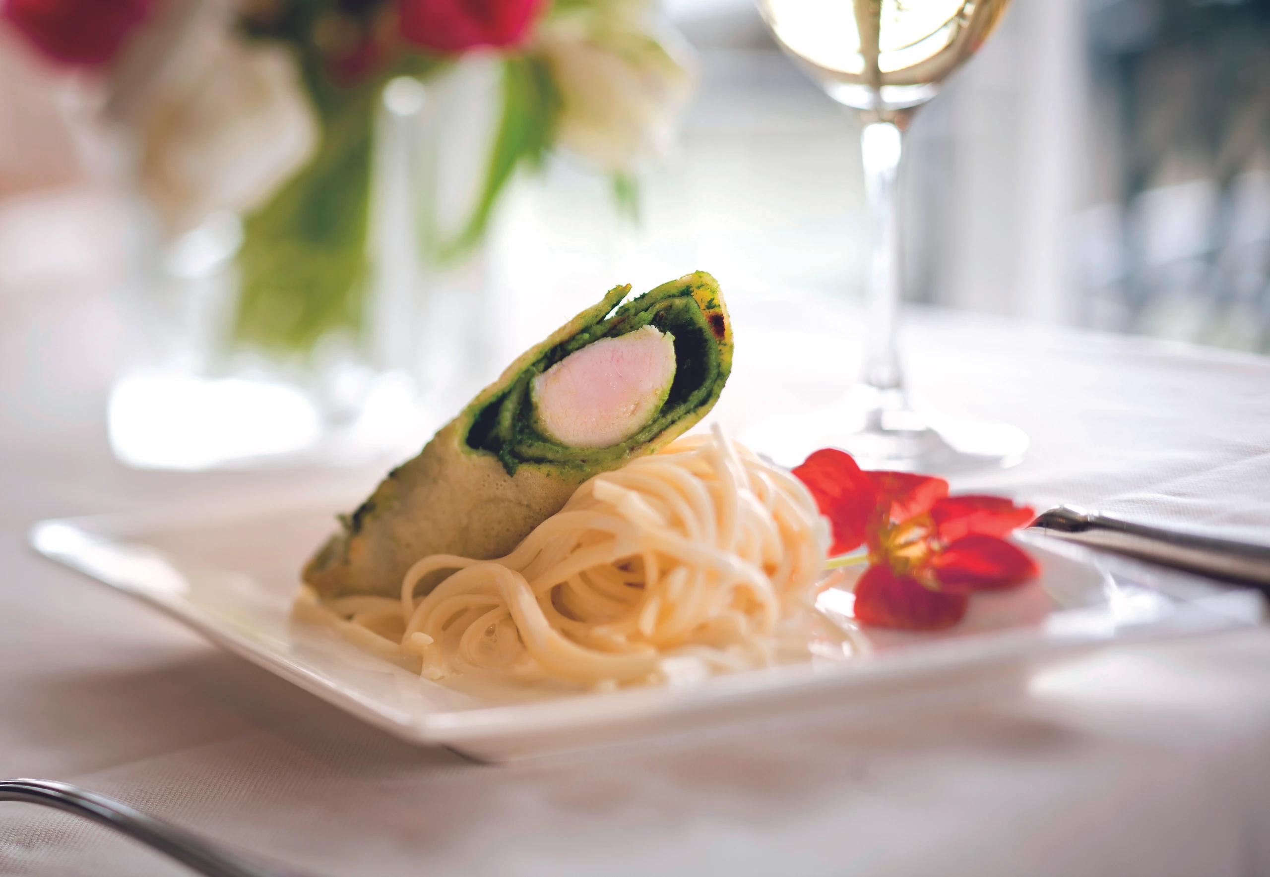 Kaninchen-Kressepalatschinken mit Tagliatelle