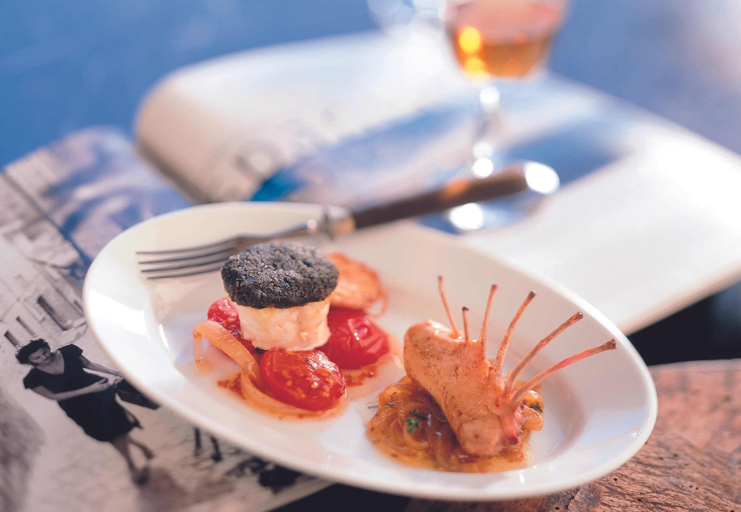 Kaninchenrücken in Stücke teilen und mit den Sherry-Zwiebeln anrichten.