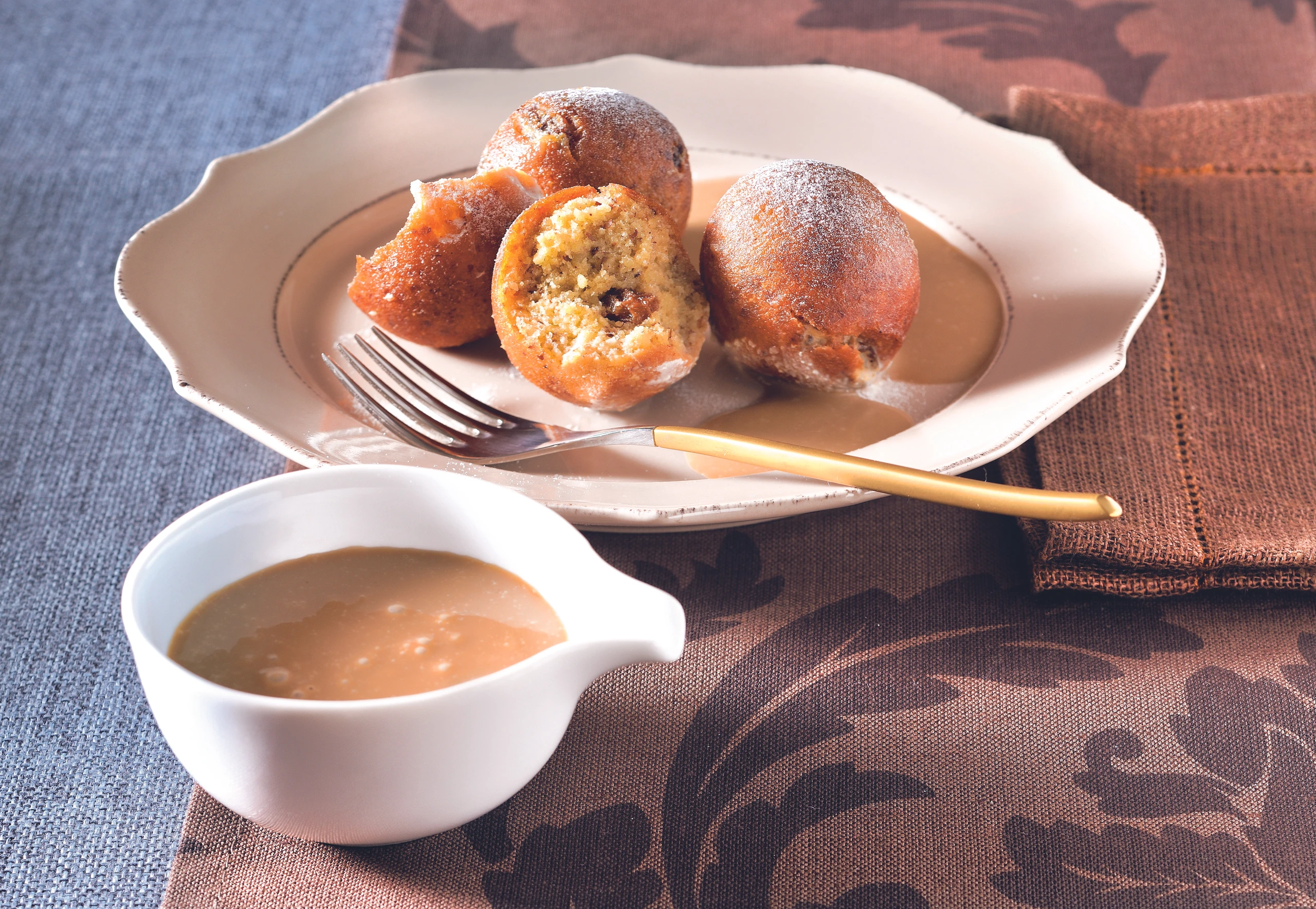 Aus der Masse 12 Knödel formen, in heißem Öl goldgelb backen. Herausnehmen, auf Küchenpapier abtropfen lassen.