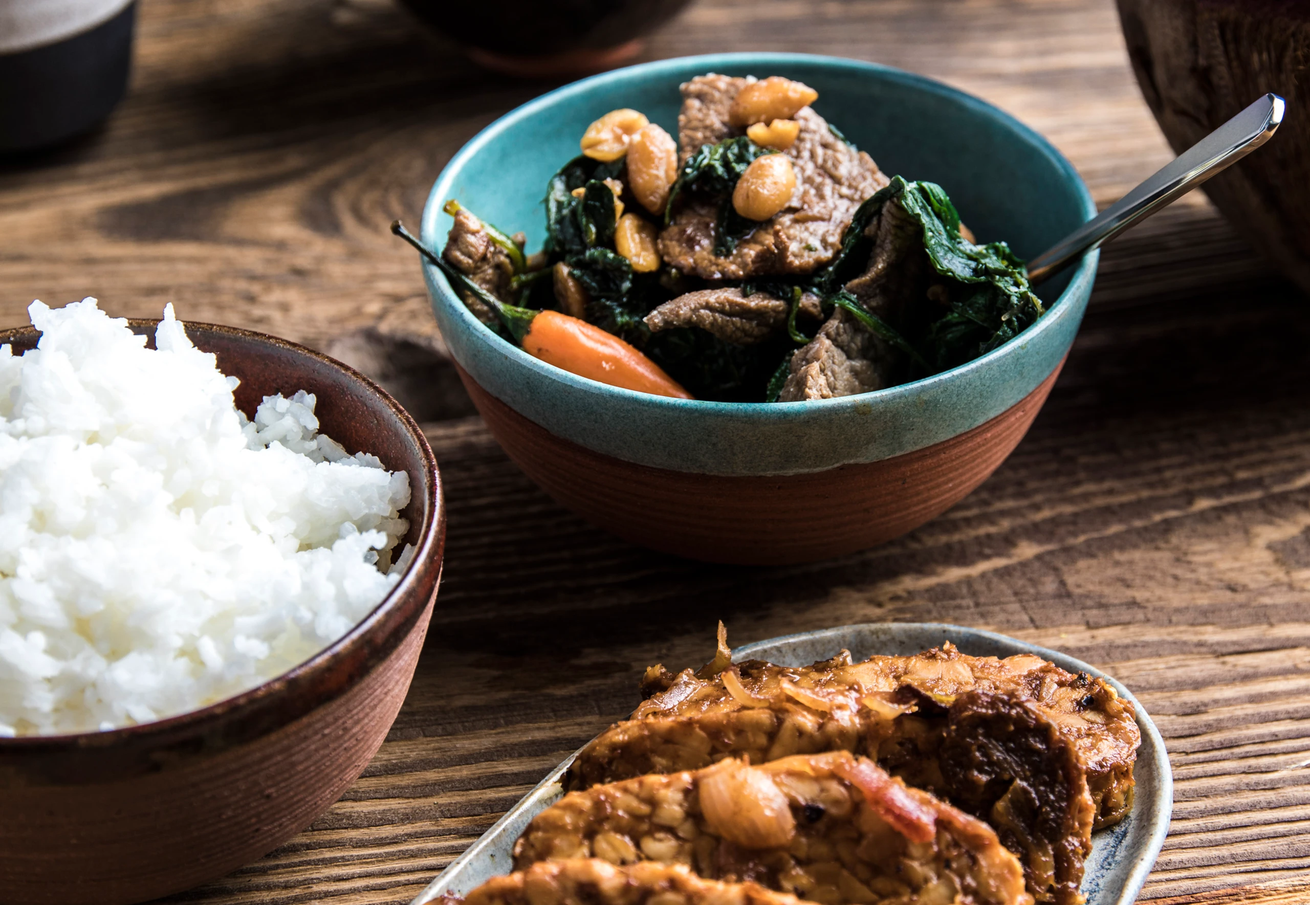 Tempeh einlegen und 40 Minuten köcheln (dabei alle 15 Minuten wenden). Tempeh auf eine Platte legen und mit der Sauce beträufeln. Dazu passt asiatisches Gemüse und Reis.