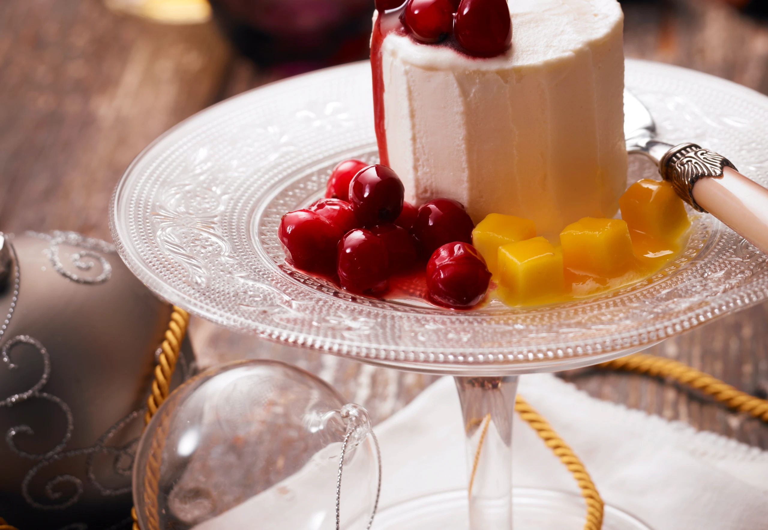 Restliches Obers cremig schlagen, Parfaits aus den Förmchen stürzen und damit einstreichen. Parfaits mit Cranberry- und Mango-Sauce servieren.