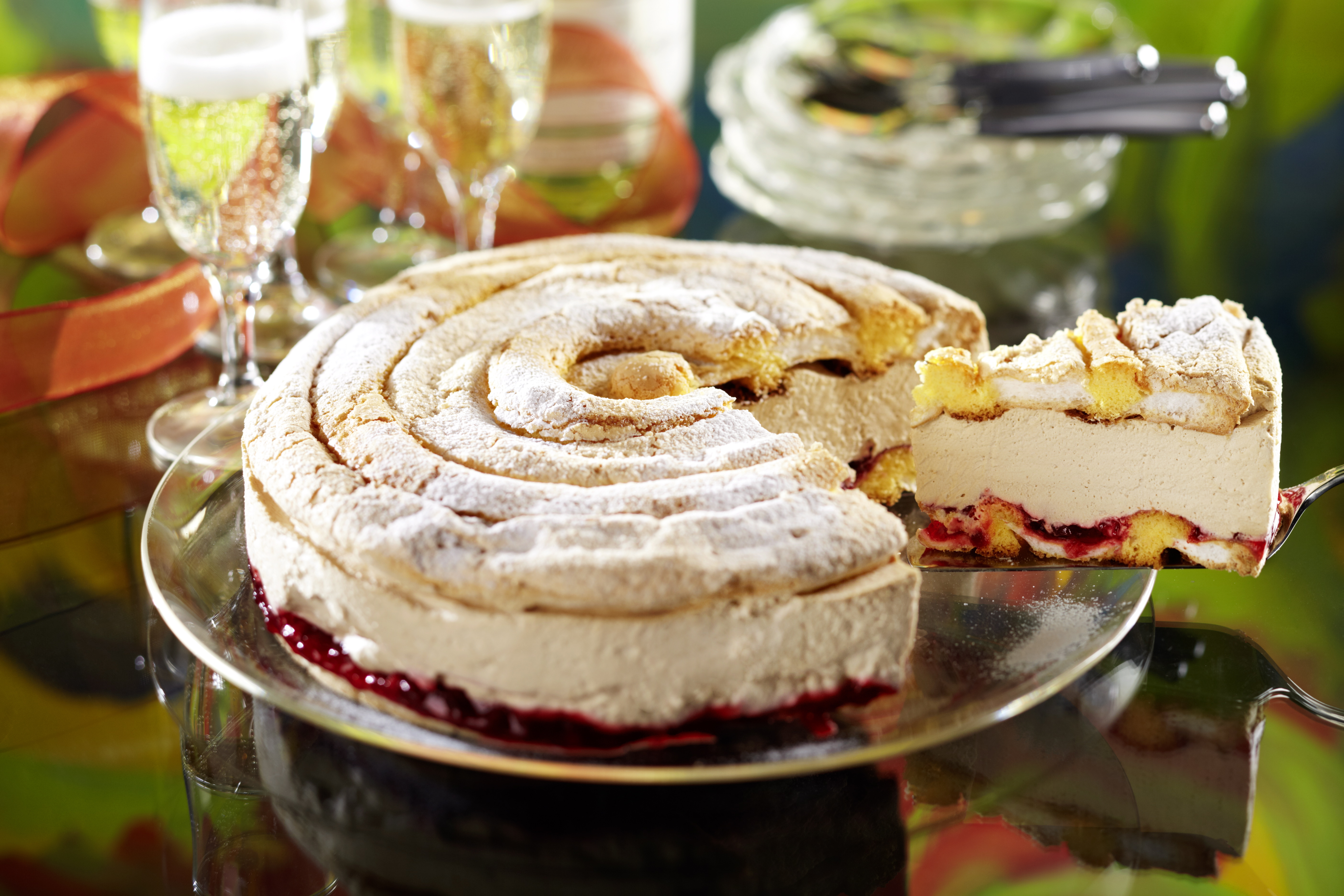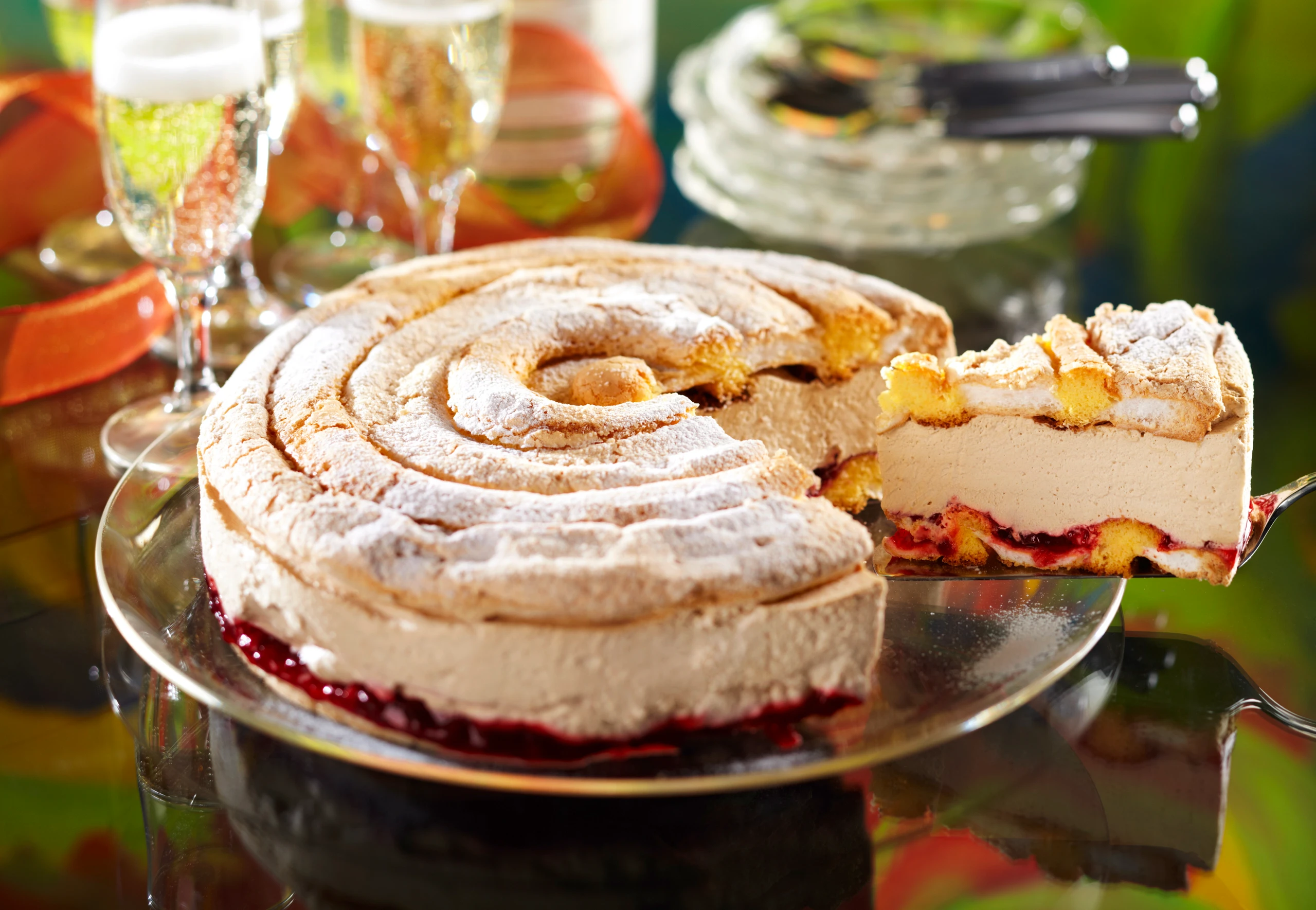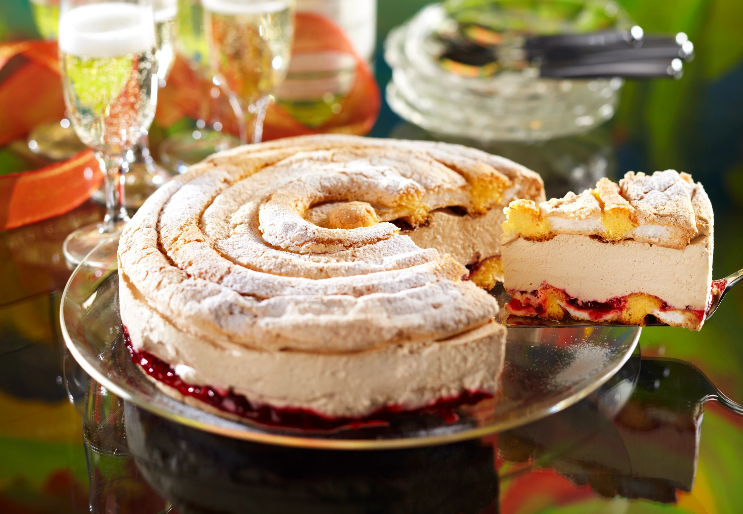 Kardinaltorte mit Kaffeecreme und Preiselbeeren
