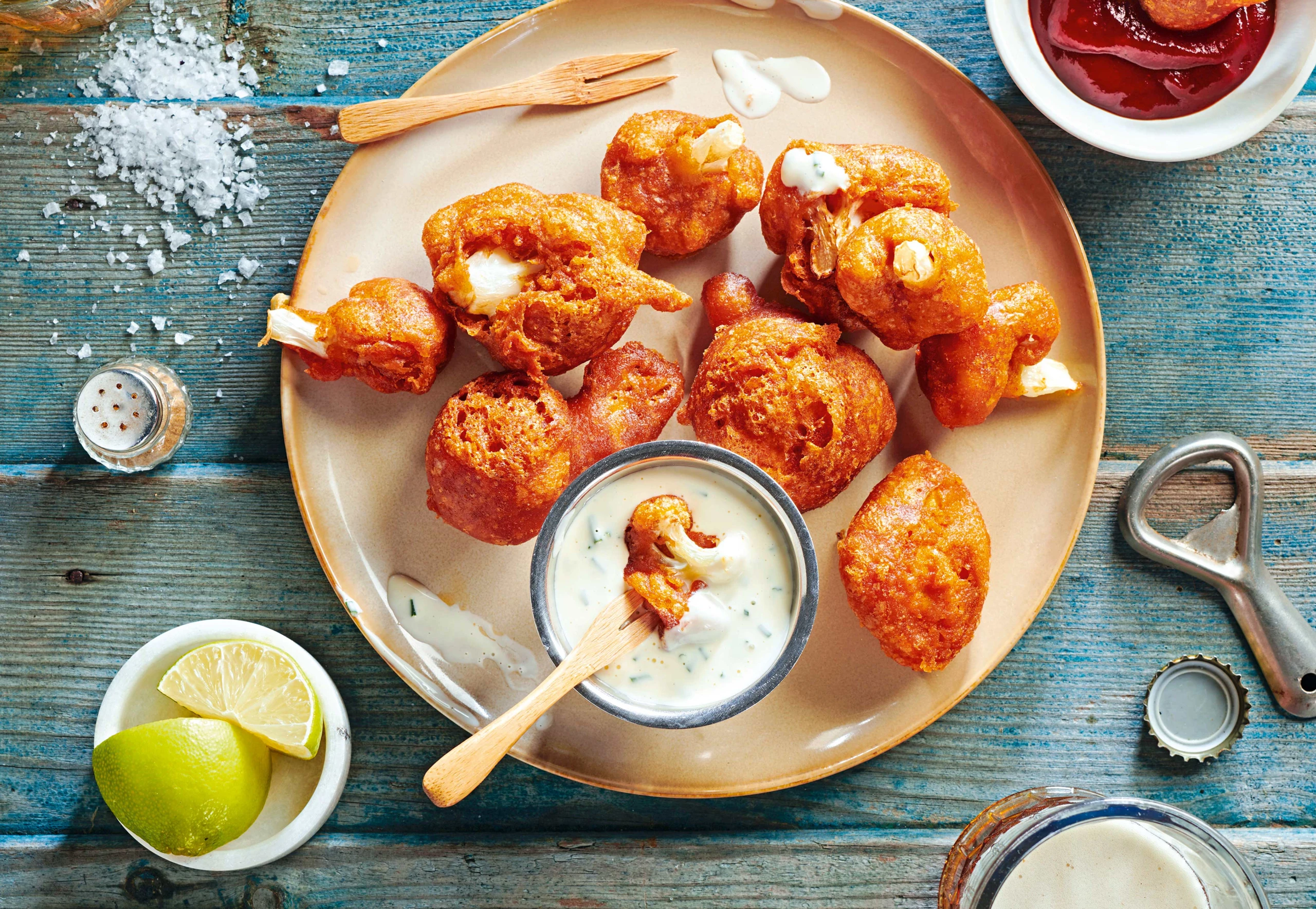 Karfiol-BBQ-Nuggets in Bierteig