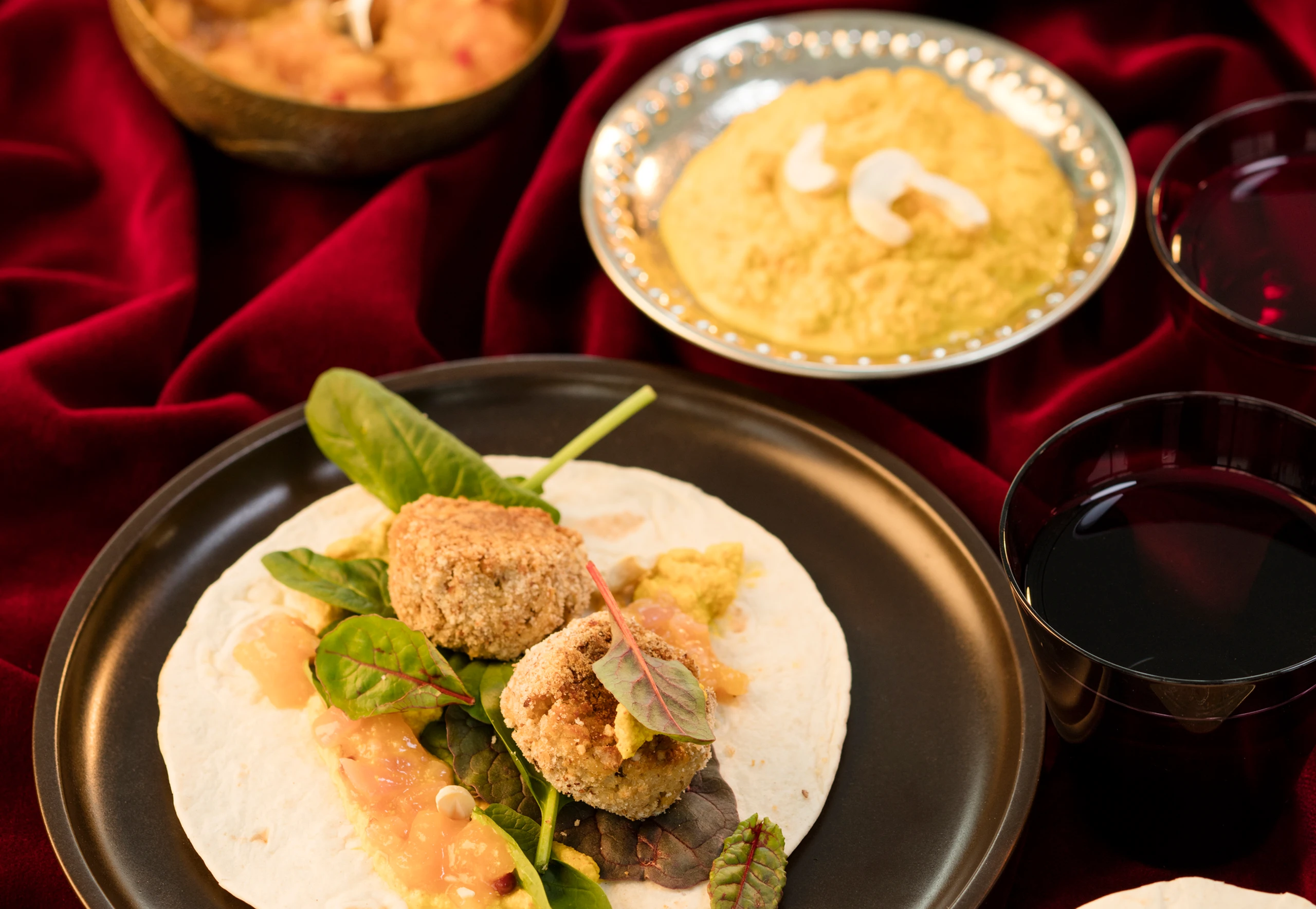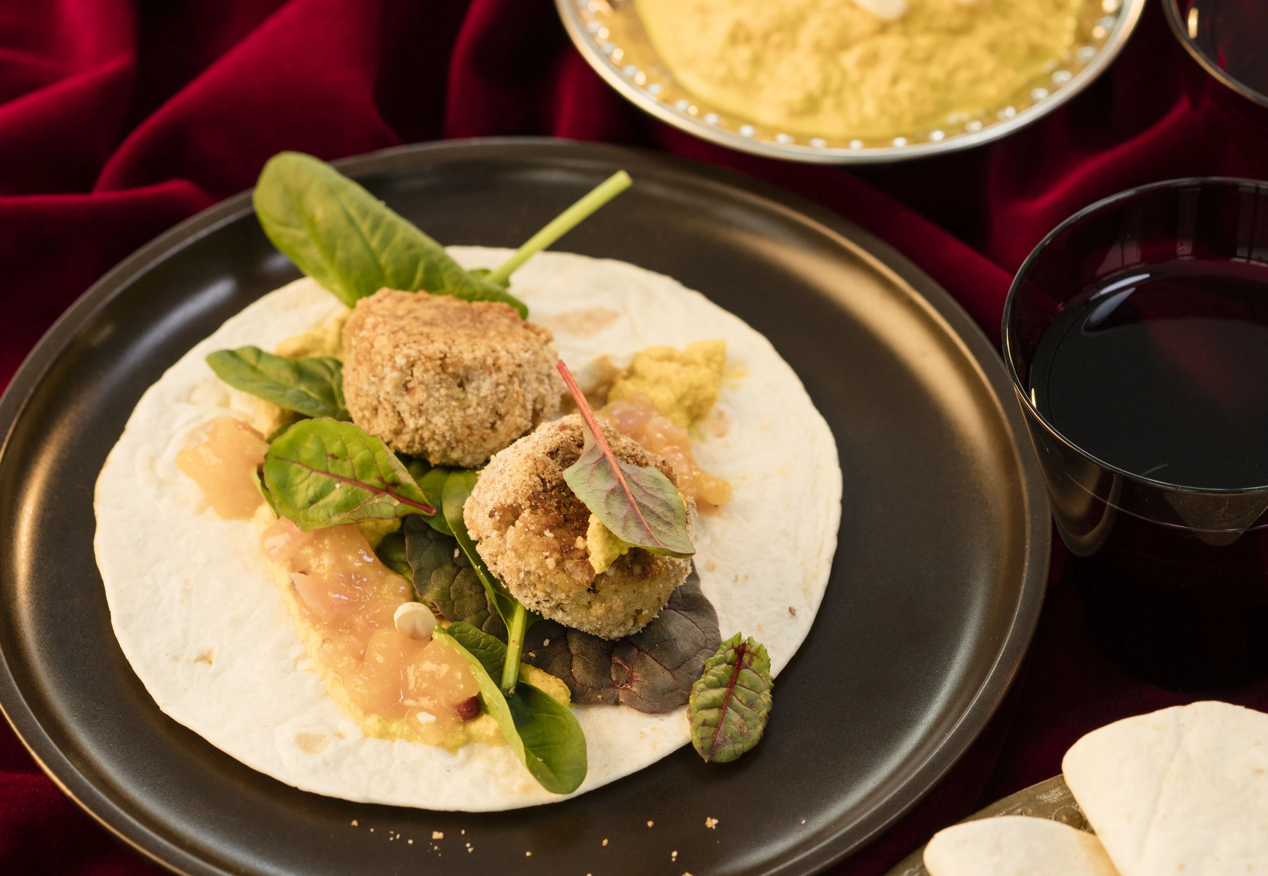 Tortilla mit Karfiol-Kichererbsenbällchen