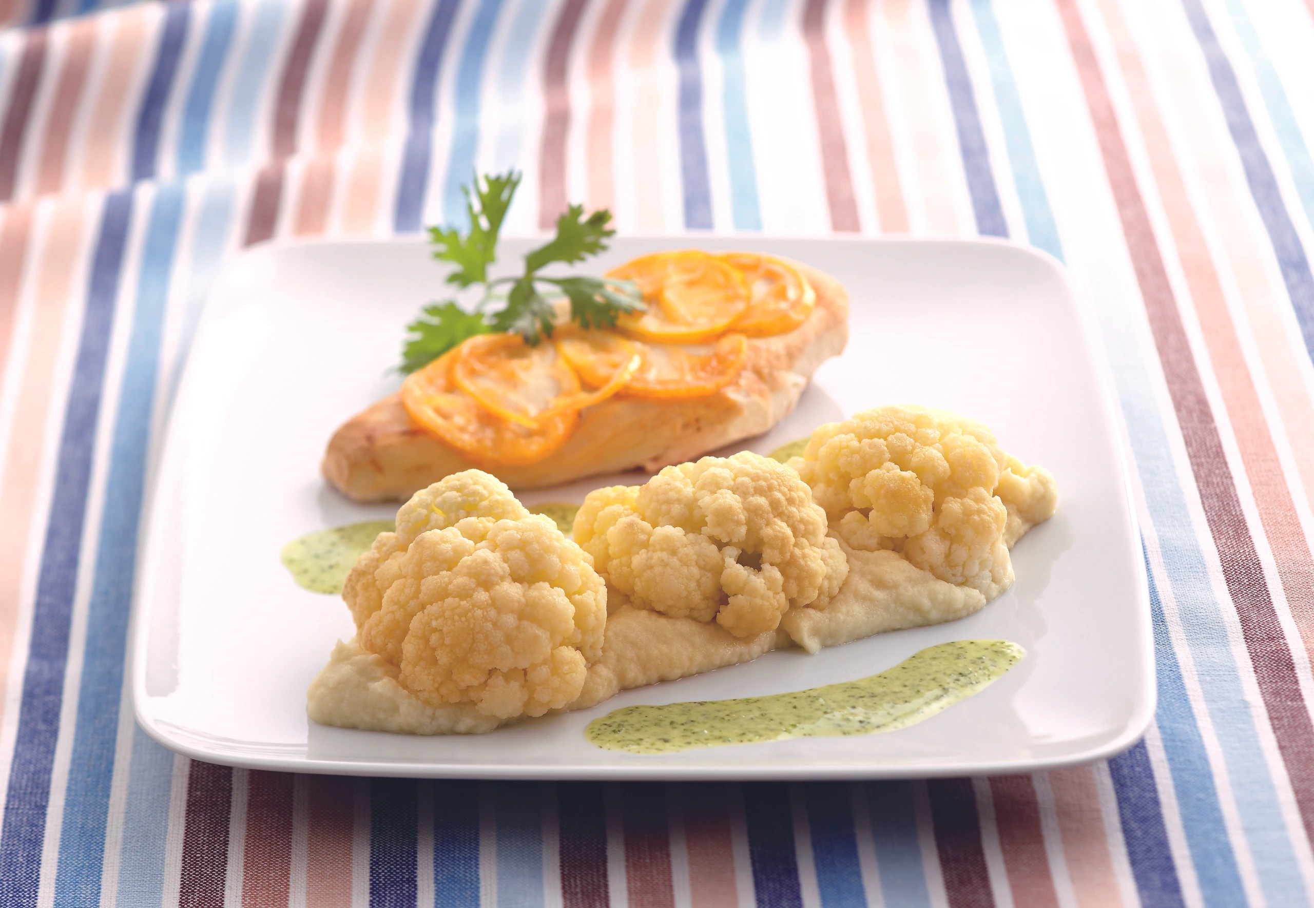 Zitronenhuhn mit Karfiol-Kokosmilchpüree