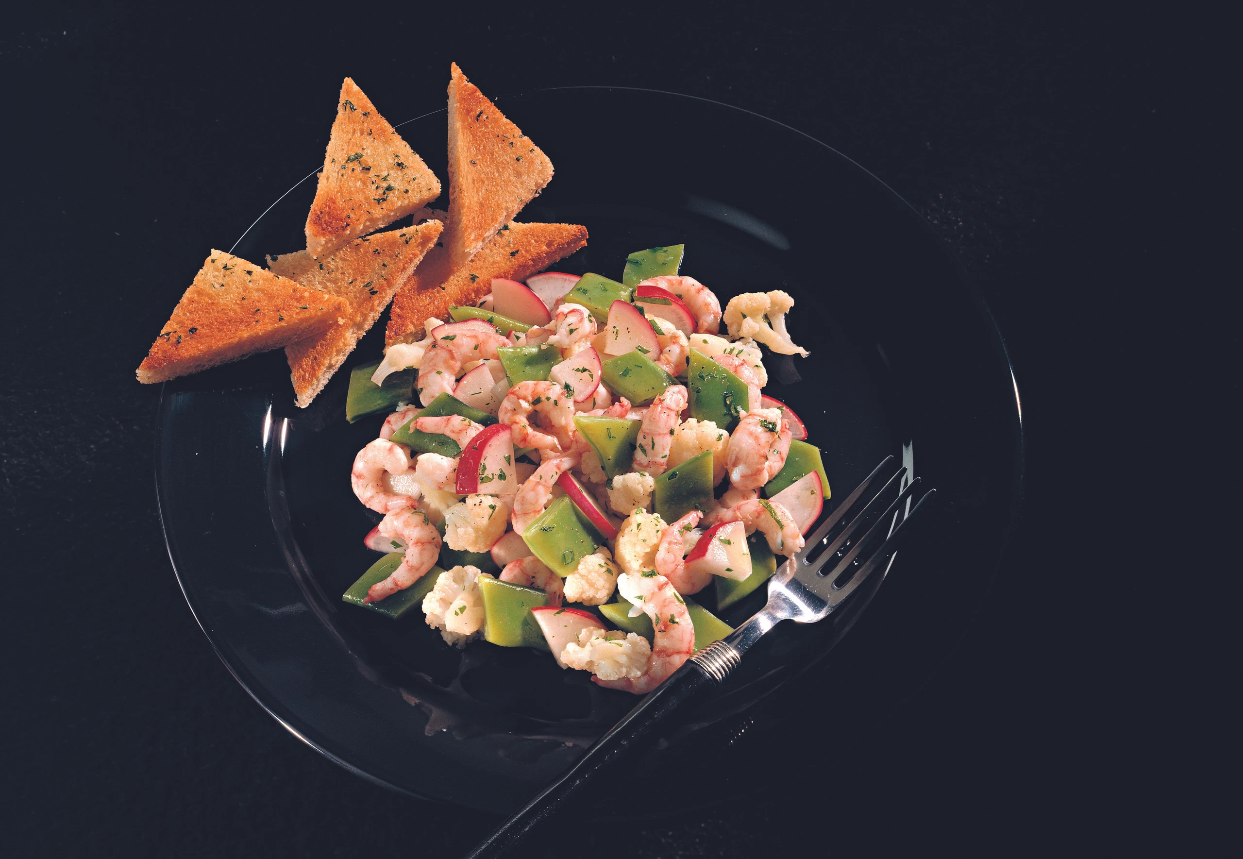 Karfiol-Shrimps-Salat mit Nussmarinade